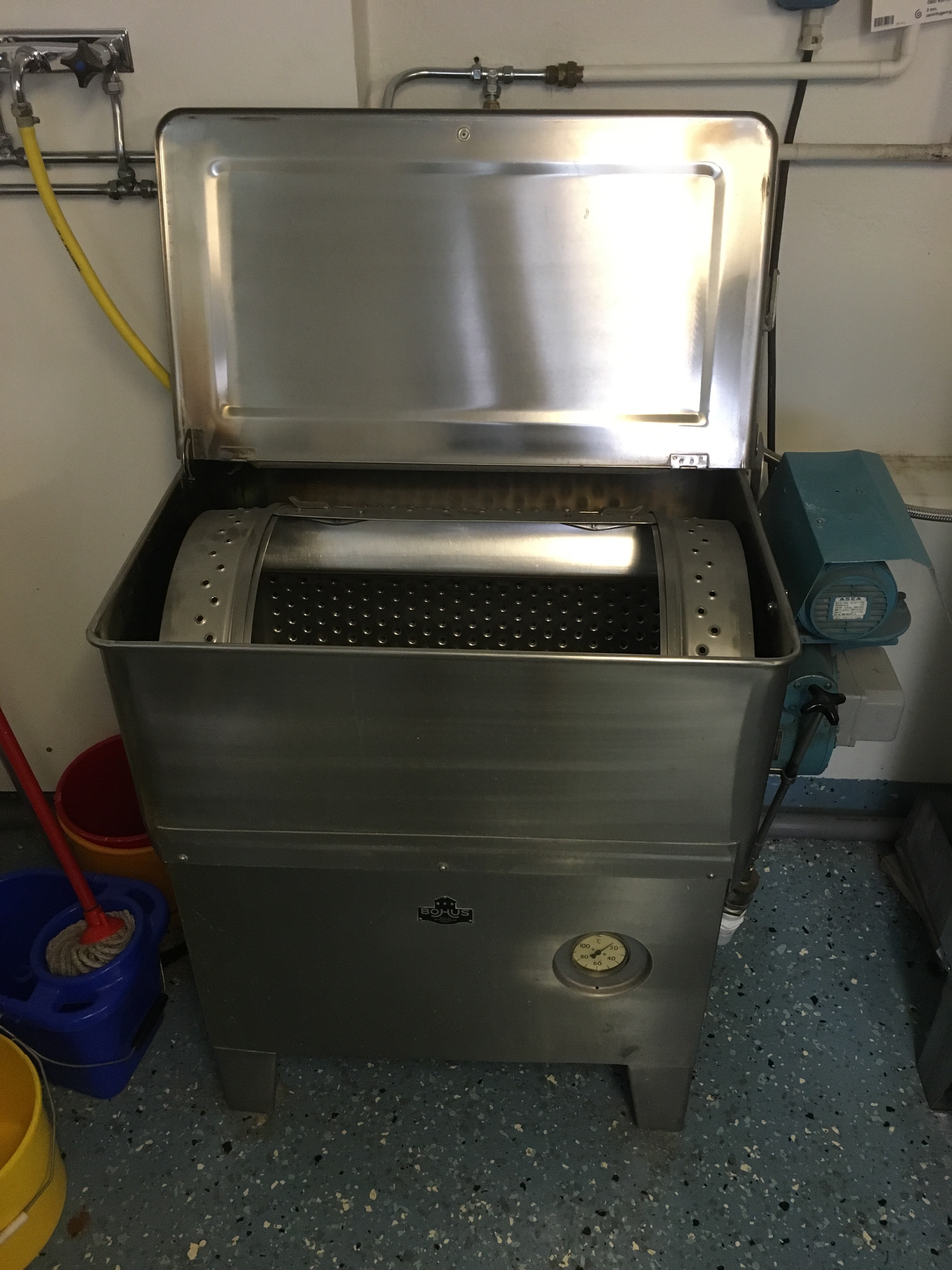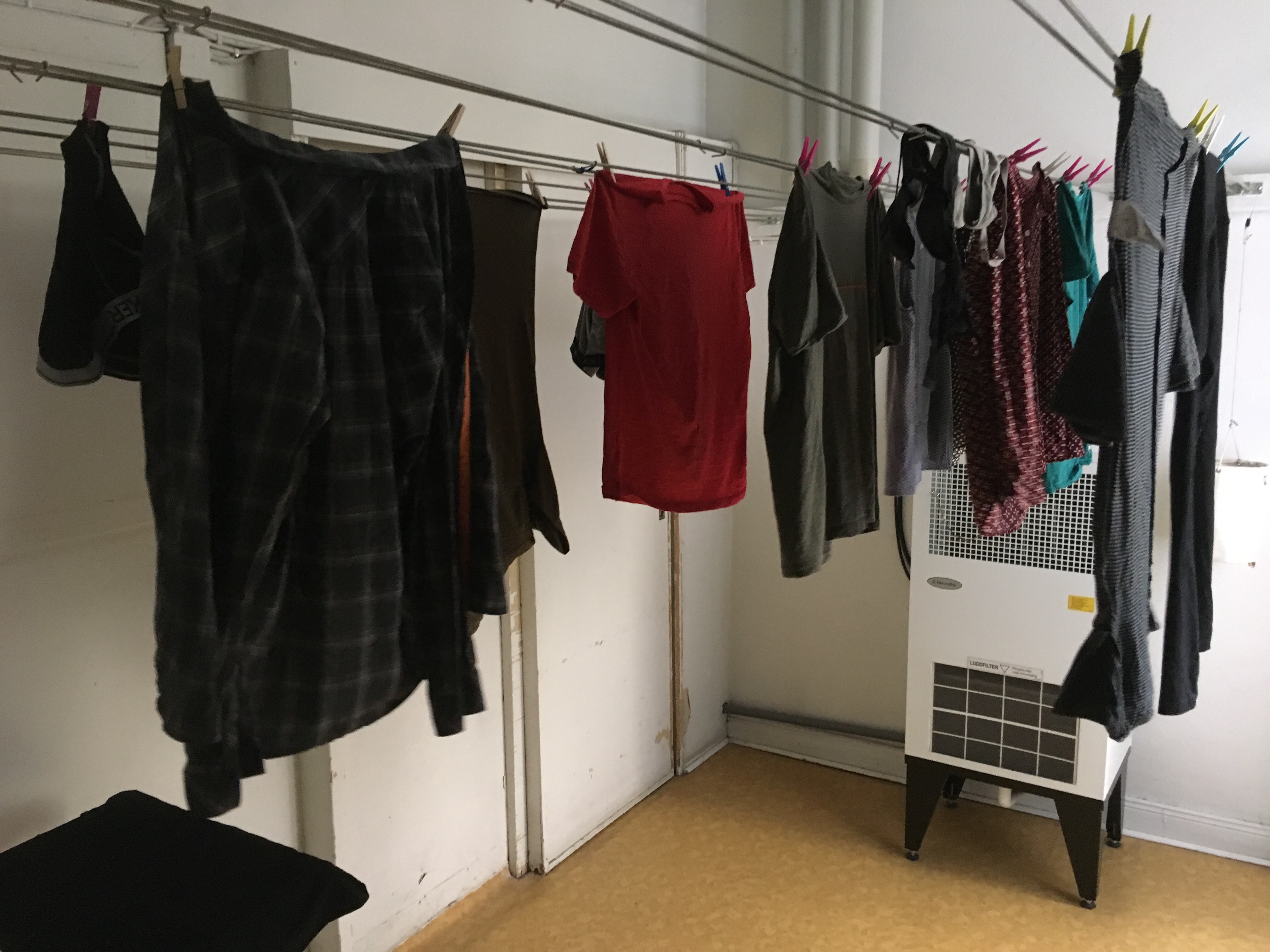 Step 6, hang to dry. I must say, this was pretty cool. This is a “drying room” where you hang your clothes in the basement, turn on the giant, heated fan, and close the door. Works well. And, yes, there was also a regular electric clothes dryer, but this was more interesting.
