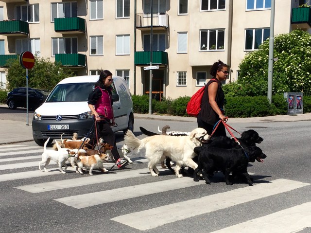 A little further along, as we entered the urban landscape for a short time, we passed a couple professional dog walkers. Imagine the chaos if a squirrel ran by.