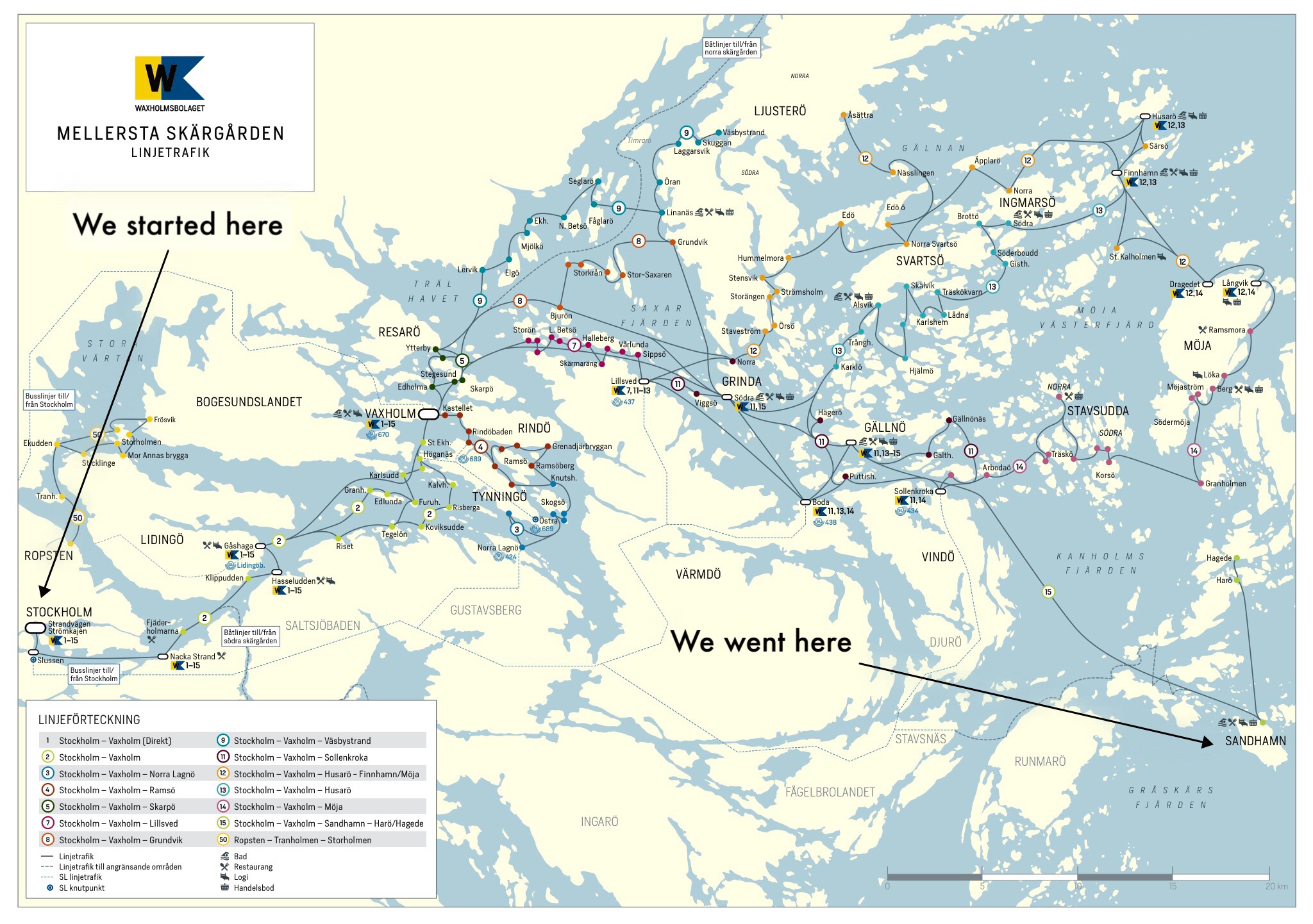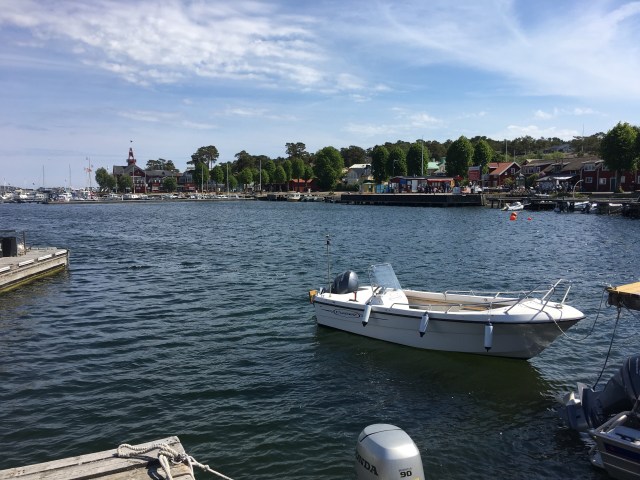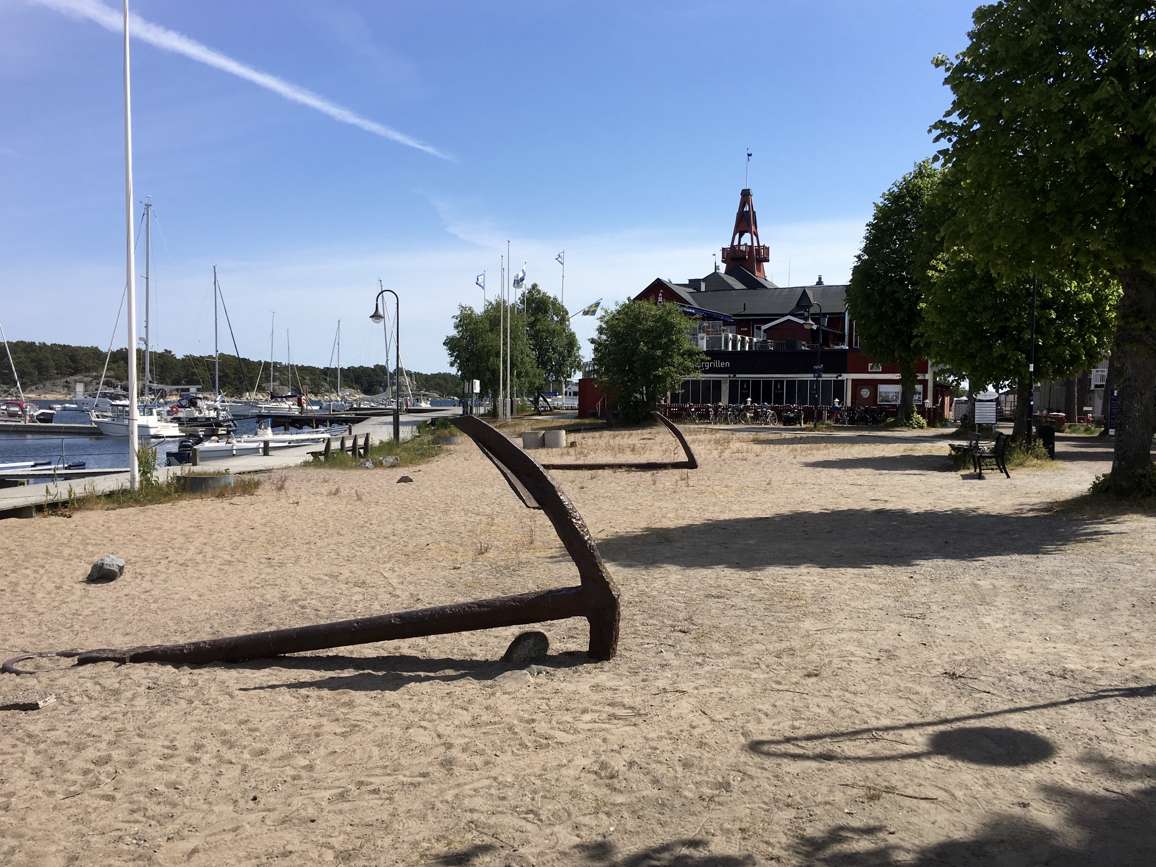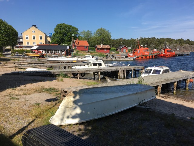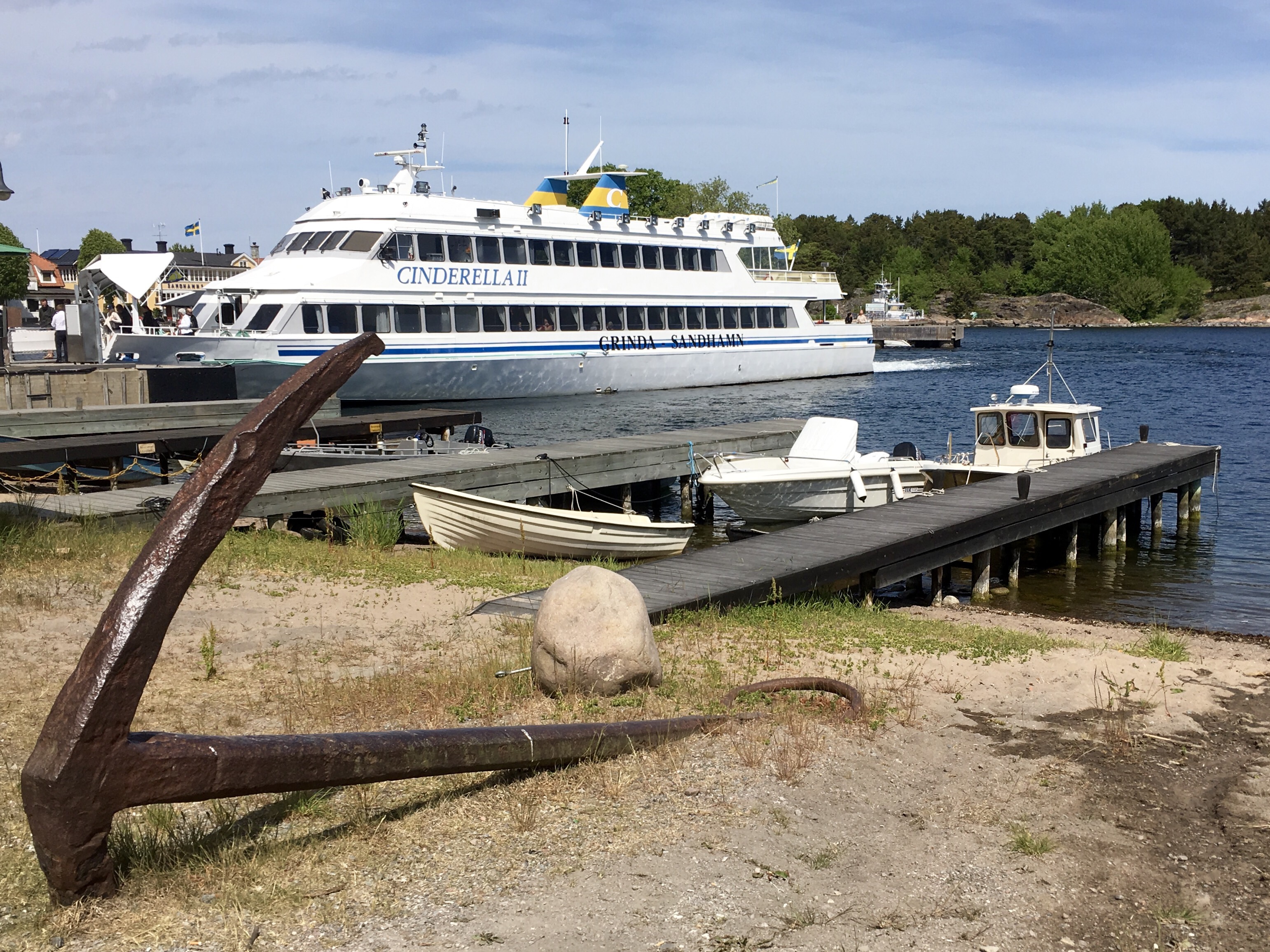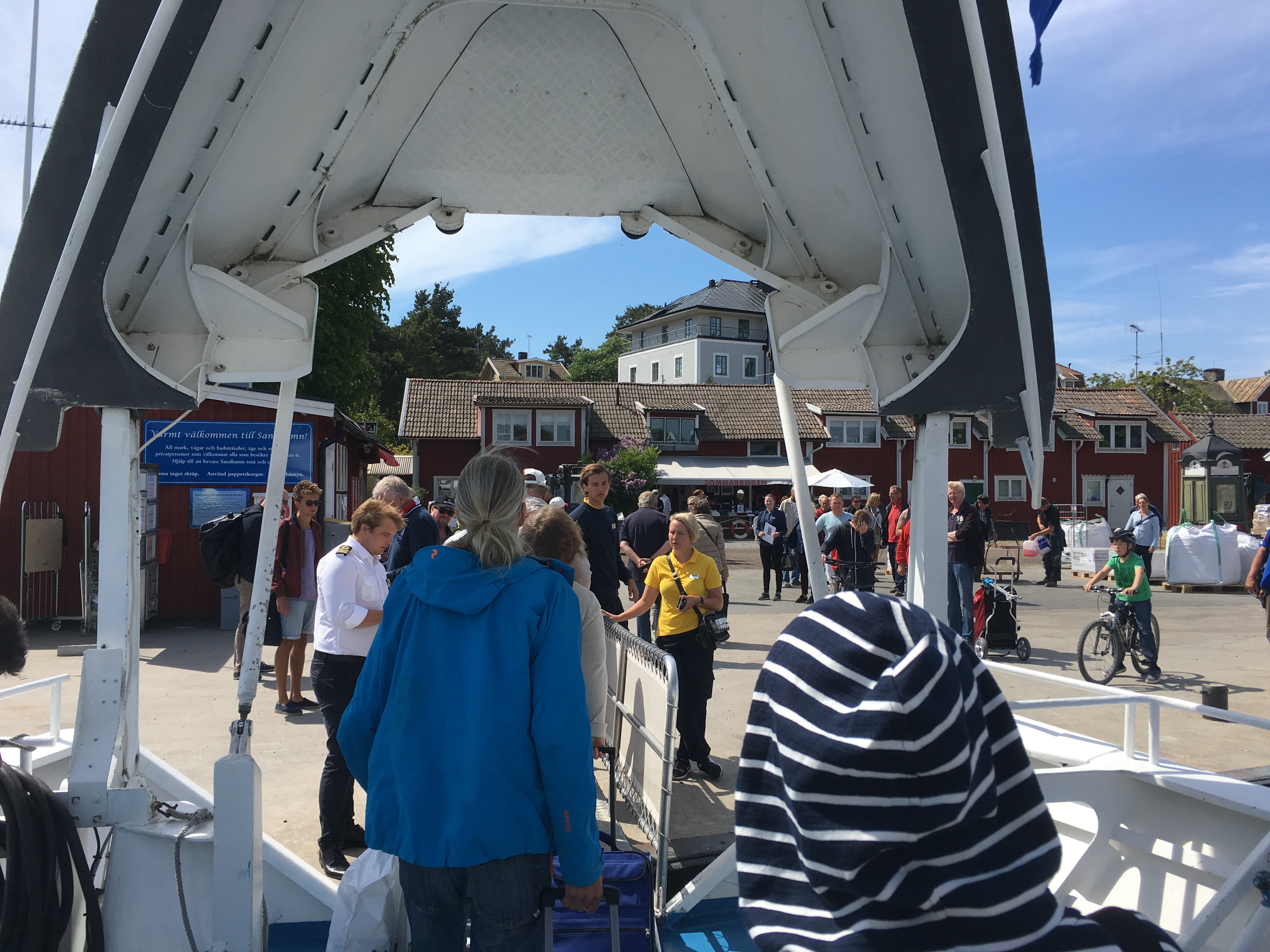 When we lived in Miami, Florida, we sailed or motored a few times to Sands Key, an uninhabited island in Biscayne Bay at the far north end of the Florida Keys. A couple days ago, we took the ferry to the Swedish equivalent, Sandön (“Sand Island”), which lies 30 miles east of Stockholm on the eastern edge of the 24,000 island Swedish Archipelago. Sandön is more commonly referred to here as Sandhamn, the name of the village that was settled there, which home to about 100 full-time residents, 3,000 seasonal summer residents and 100,000 annual visitors.