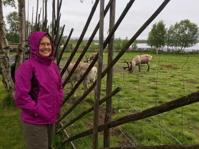 Yesterday, we flew from Stockholm to Kiruna in northern Sweden. We arrived in 40° F, rainy weather, picked up our rental car, and, after a quick lunch, drove out to the Sámi Camp to see the reindeer.