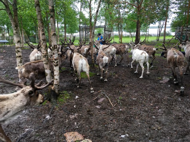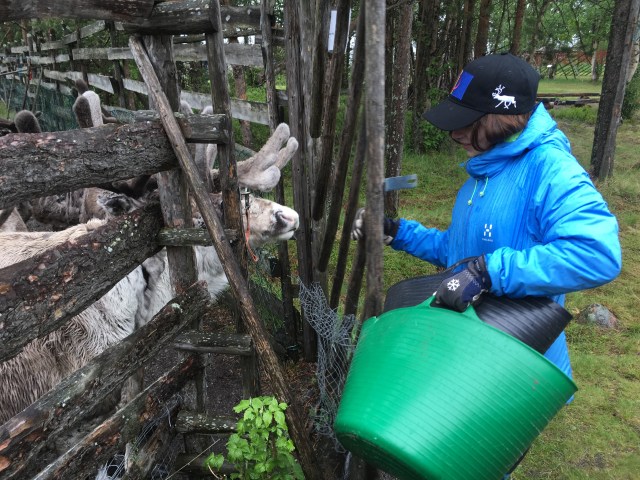 Lucky for her, there were plenty of hungry reindeer here at the Sámi Camp.