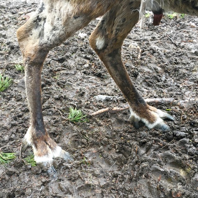 We noticed their widely cloven hooves and asked about them. Turns out that this is characteristic of reindeer and it enables them to walk on the snow and tundra of the north; their cloven hooves also allow them to dig into the snow in winter time in order to get to the moss growing below.