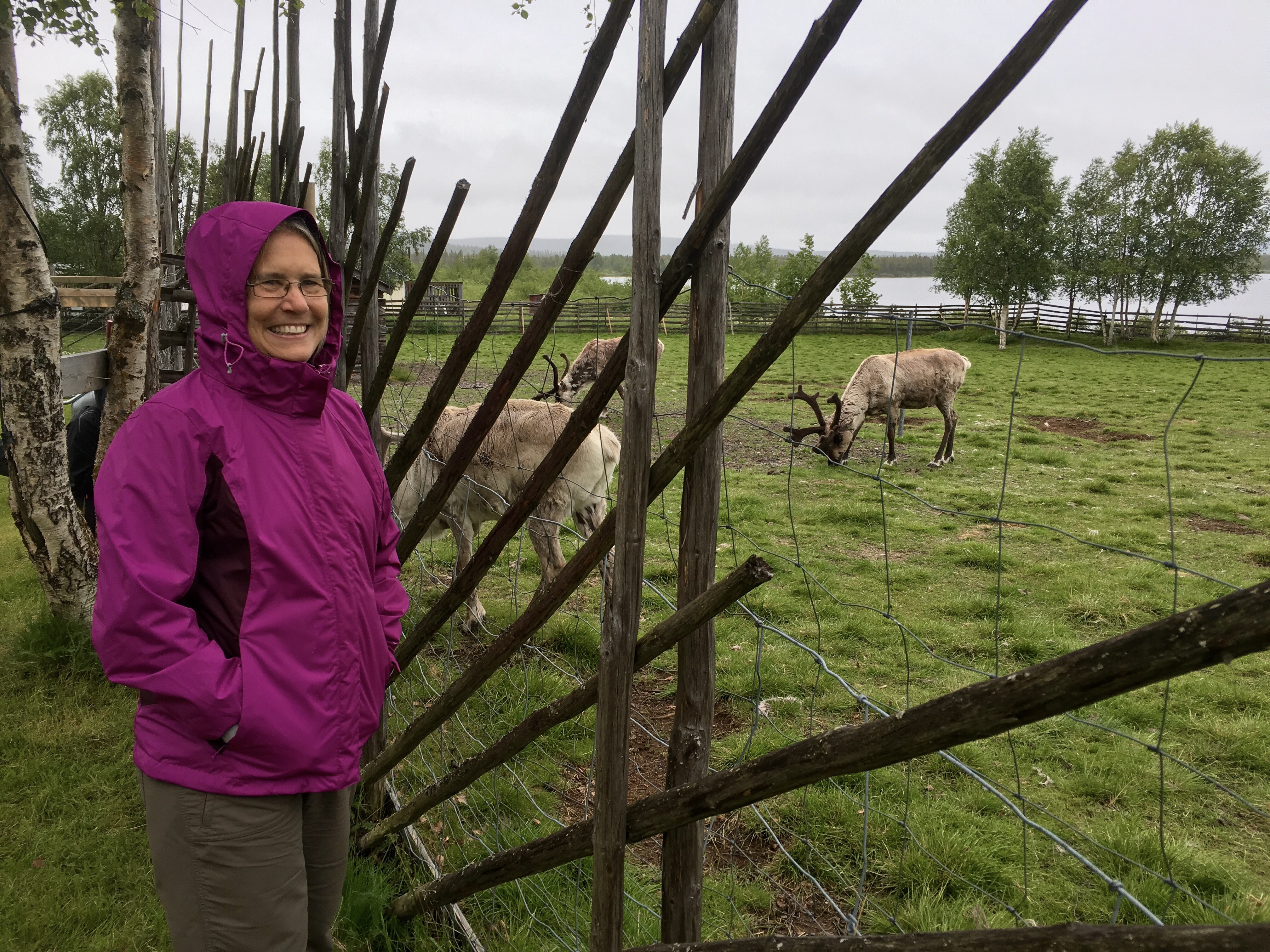Yesterday, we flew from Stockholm to Kiruna in northern Sweden. We arrived in 40° F, rainy weather, picked up our rental car, and, after a quick lunch, drove out to the Sámi Camp to see the reindeer.