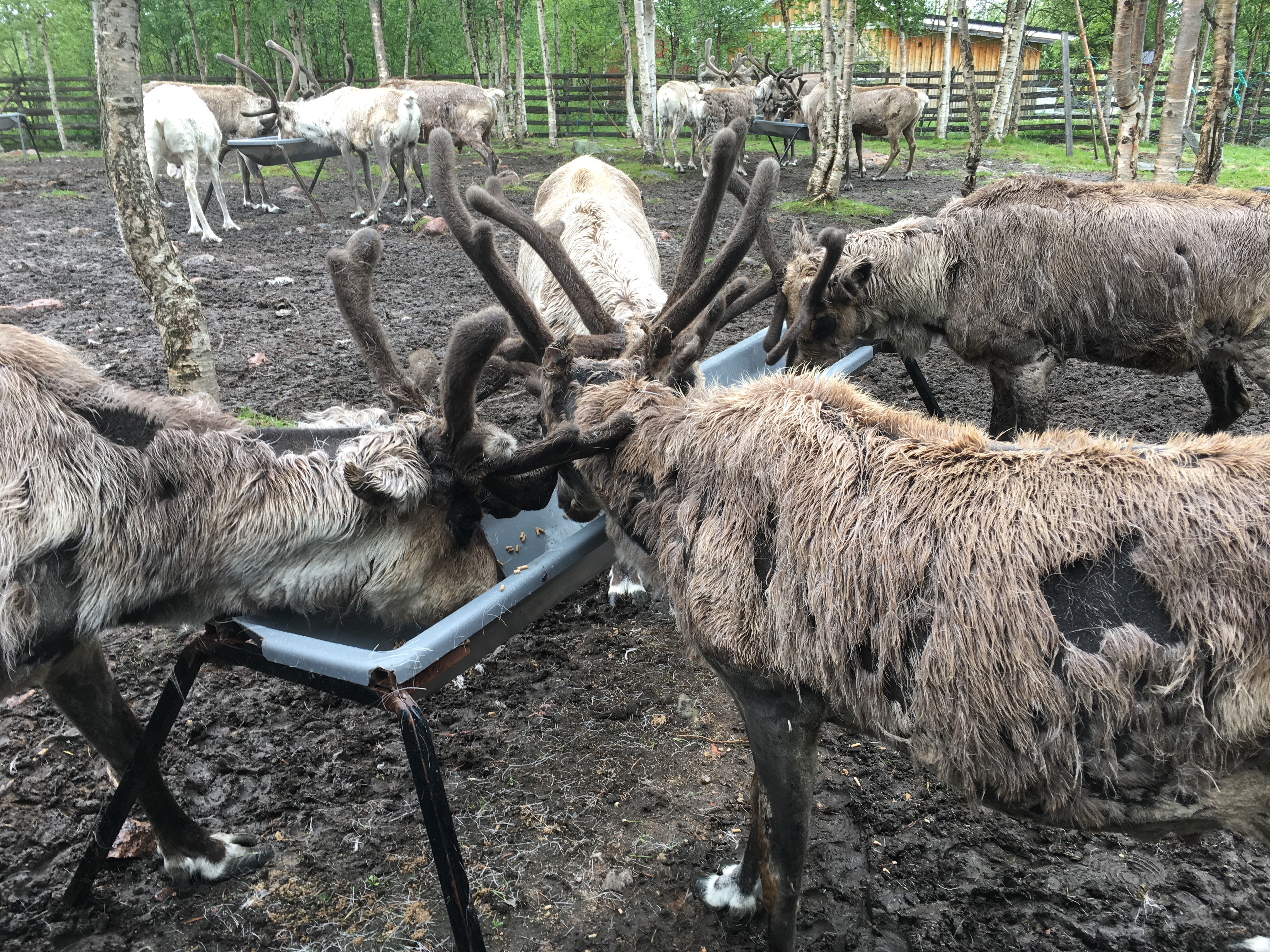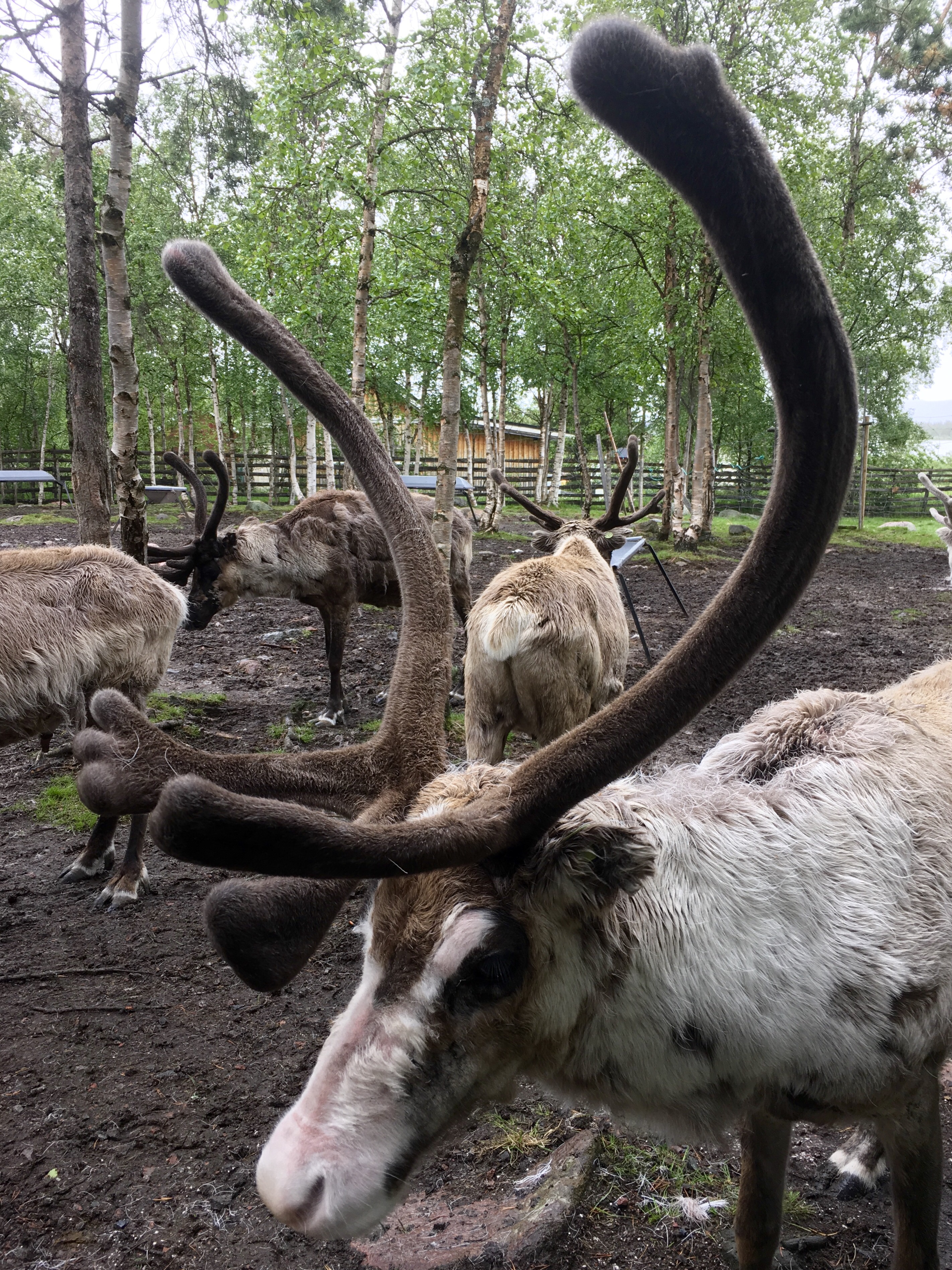 Lucky for her, there were plenty of hungry reindeer here at the Sámi Camp.