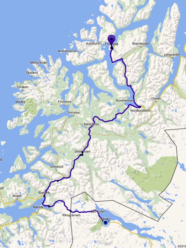 At any rate, we pretty much drove straight up there from Abisko. It was a 185 mile drive and took about 4 hours. We stayed on the main roads, E10, E6 and E8, which were well-built, 2-lane roads – and relatively new. The E-10, which connects Abisko, Sweden, to Narvik, Norway, didn’t even exist until 1984! Prior to that there was only the train, so, as you might imagine, there’s very little development of any kind outside of the towns in this part of the world.