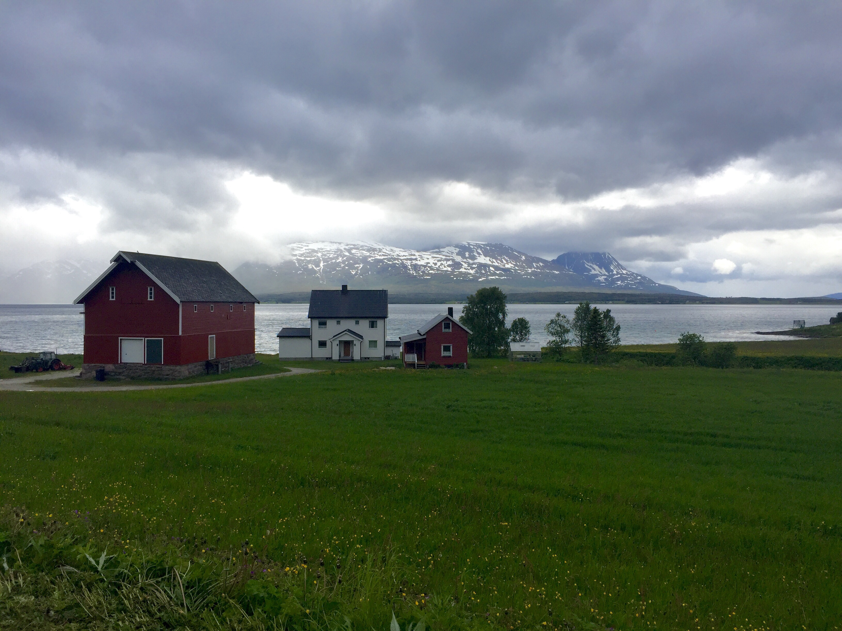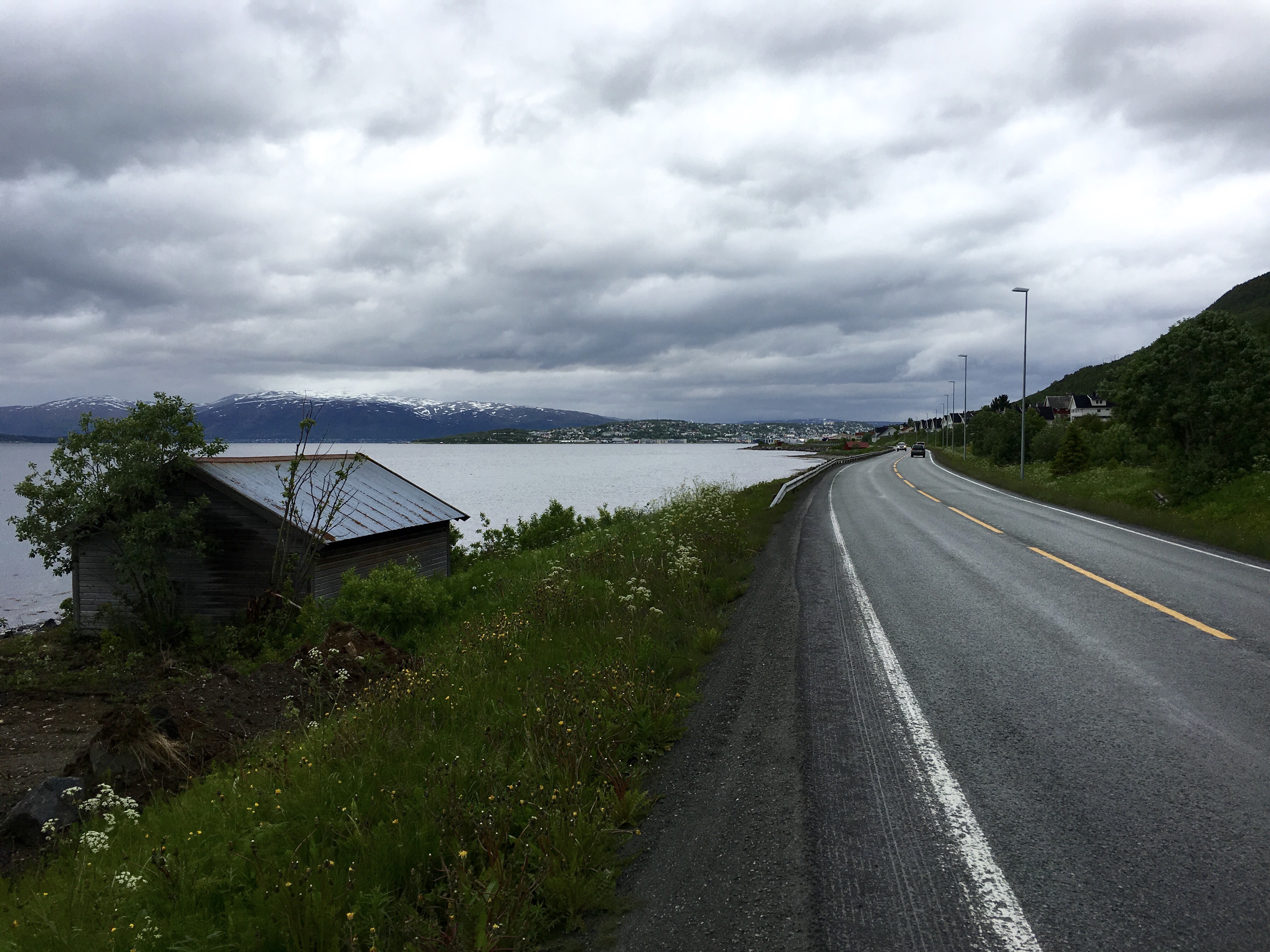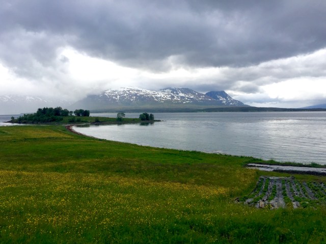 We didn’t stay long in Tromsø. We were really more interested in seeing the fjords and scenery, rather than the city and towns. In fact, our main purpose in making Tromsø our terminal destination was that we were hoping to catch a ferry from there going south in order to experience the fjords from the water. Unfortunately, none were in port when we arrived, so we drove around town for an hour and then headed back toward Abisko. On the way south, we ventured onto a local road that ran along the shoreline and afforded several magnificent views.