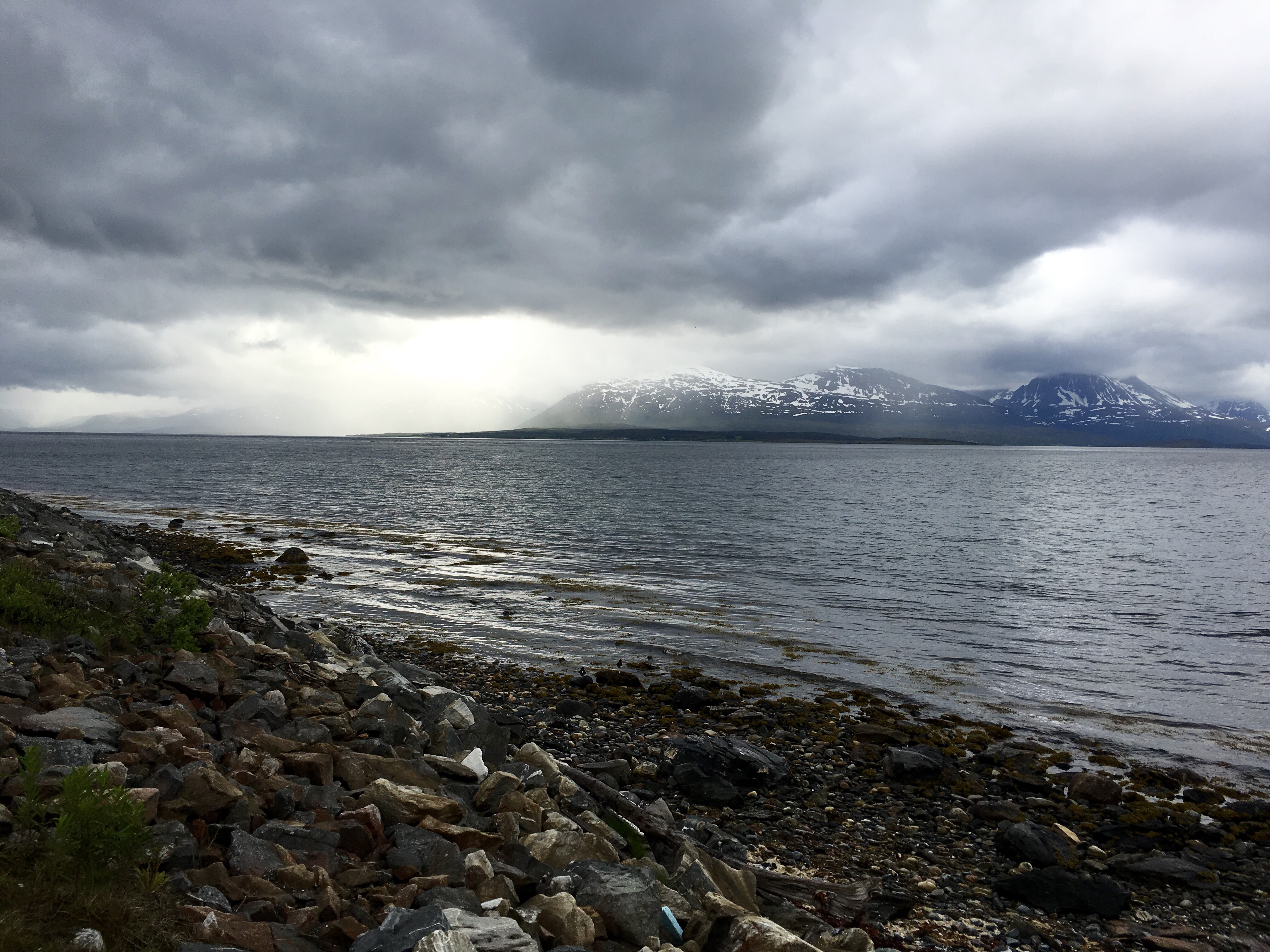 When we woke up the morning after our Stone Valley hike, the sky looked ominous. At the lodge, they make a point of telling you that Abisko is in the rain shadow of the mountains of Norway and they get very little rain as a result. Could be, but that wasn’t our experience. Sensing that it was going to be a rainy day (and feeling a little tired from our trek the day before), we decided to make it a driving day to see how far North we could go.