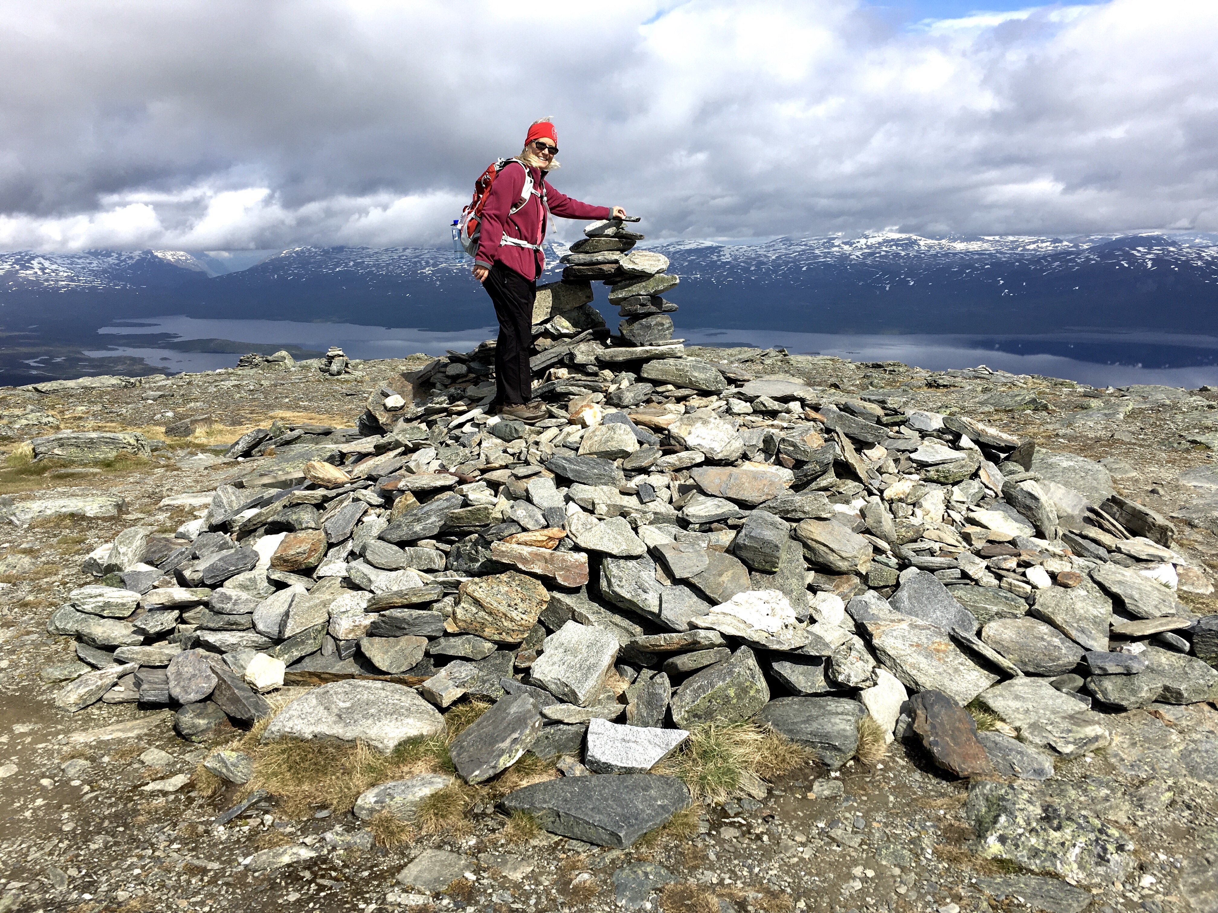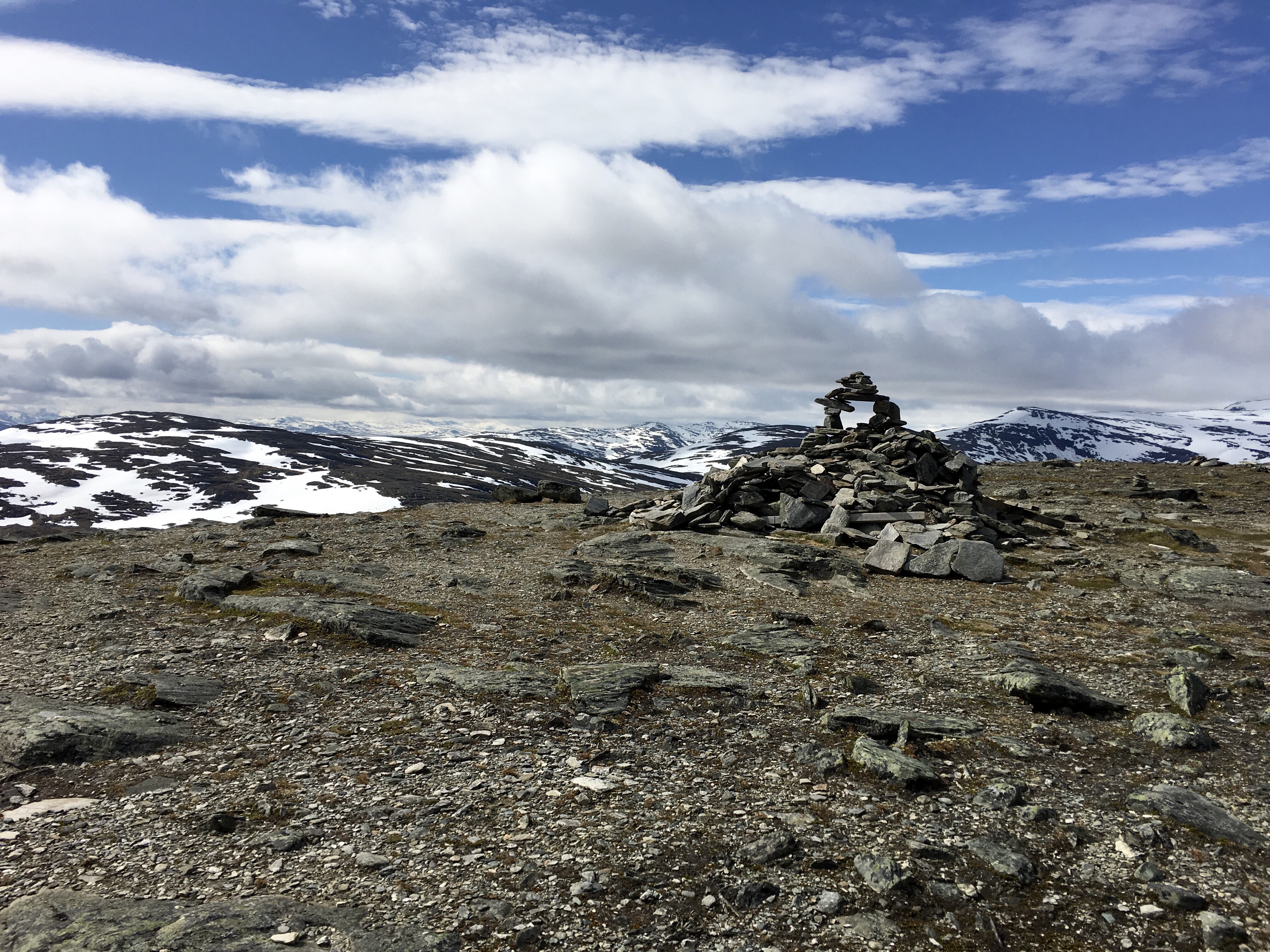 At the summit, there was a cairn created by hikers that had made it up here. Dale added our stone to the top!