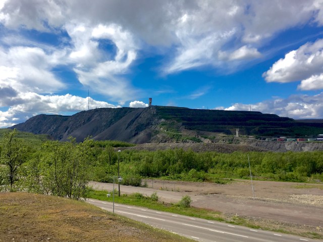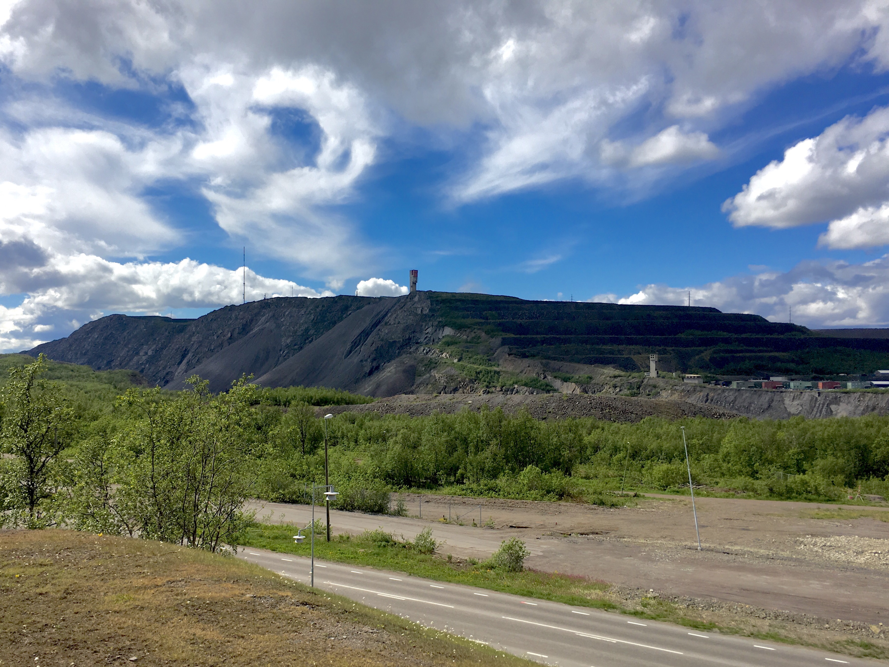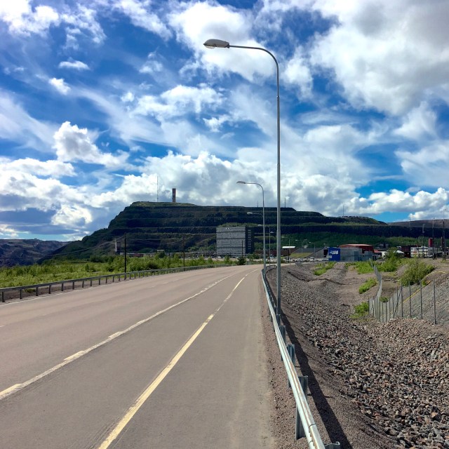 This mountain is the second that LKAB has mined, behind me to the north was the first, Luossavaara, but it’s been pretty much depleted (you can see the mining scar cut through its middle). There is now a warren of mineshafts extending from Kiirunavaara underneath the city of Kiruna itself.