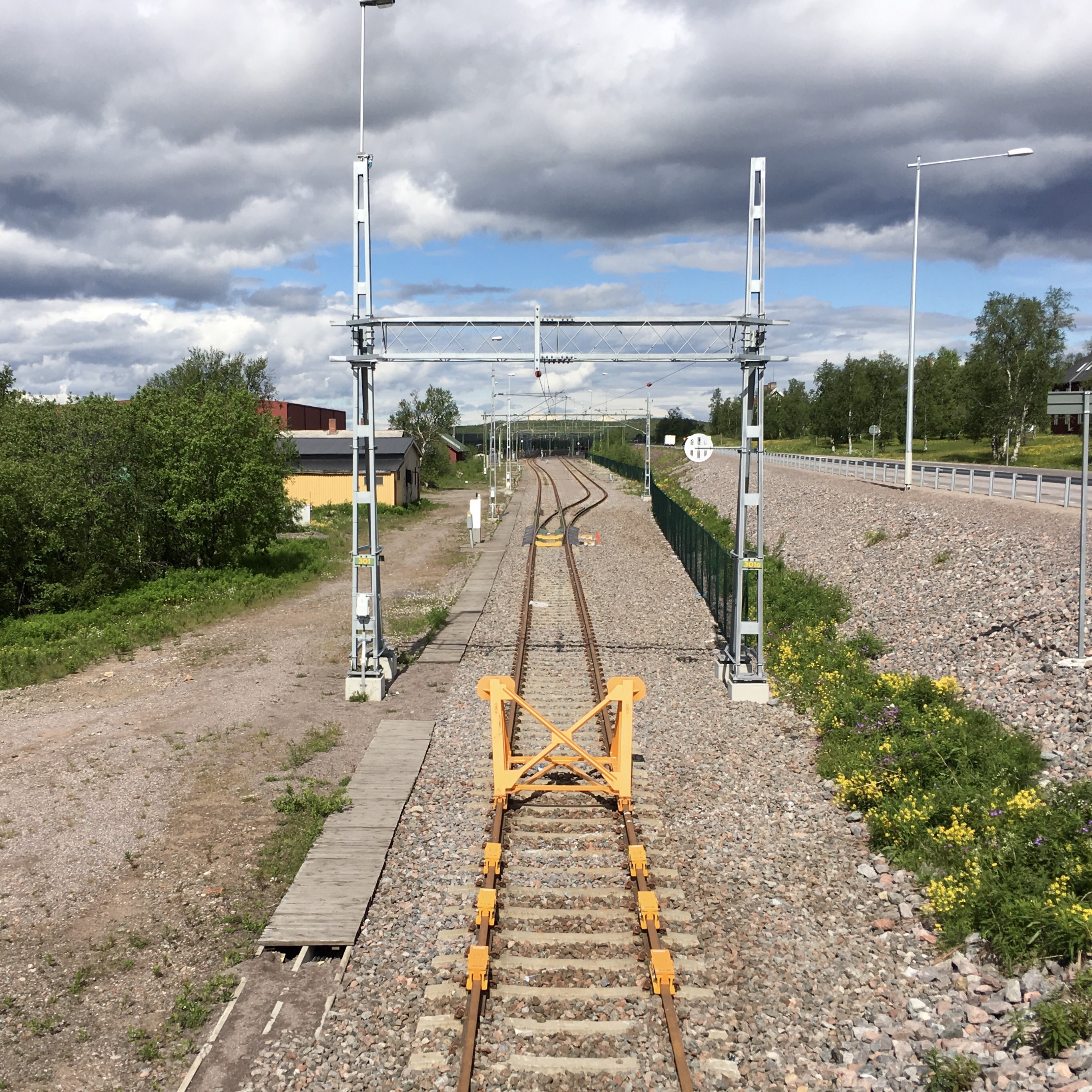The Malmbanan iron ore trains, however, veer off to the south where the cars are lined up for loading at the giant mine operated by Luossavaara-Kiirunavaara AB (limited company), known by its acronym LKAB, which is 100% owned by the Swedish government (the government acquired 96% of the stock in 1957 and the rest in 1976).