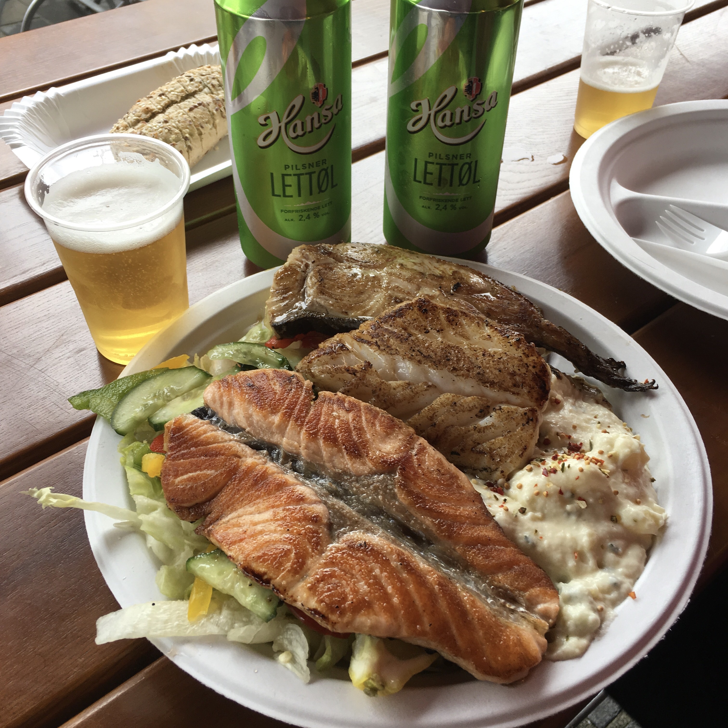 But the fish platter won out: salmon, cod and halibut, same species as in Washington, but for some reason, it just tasted better here.