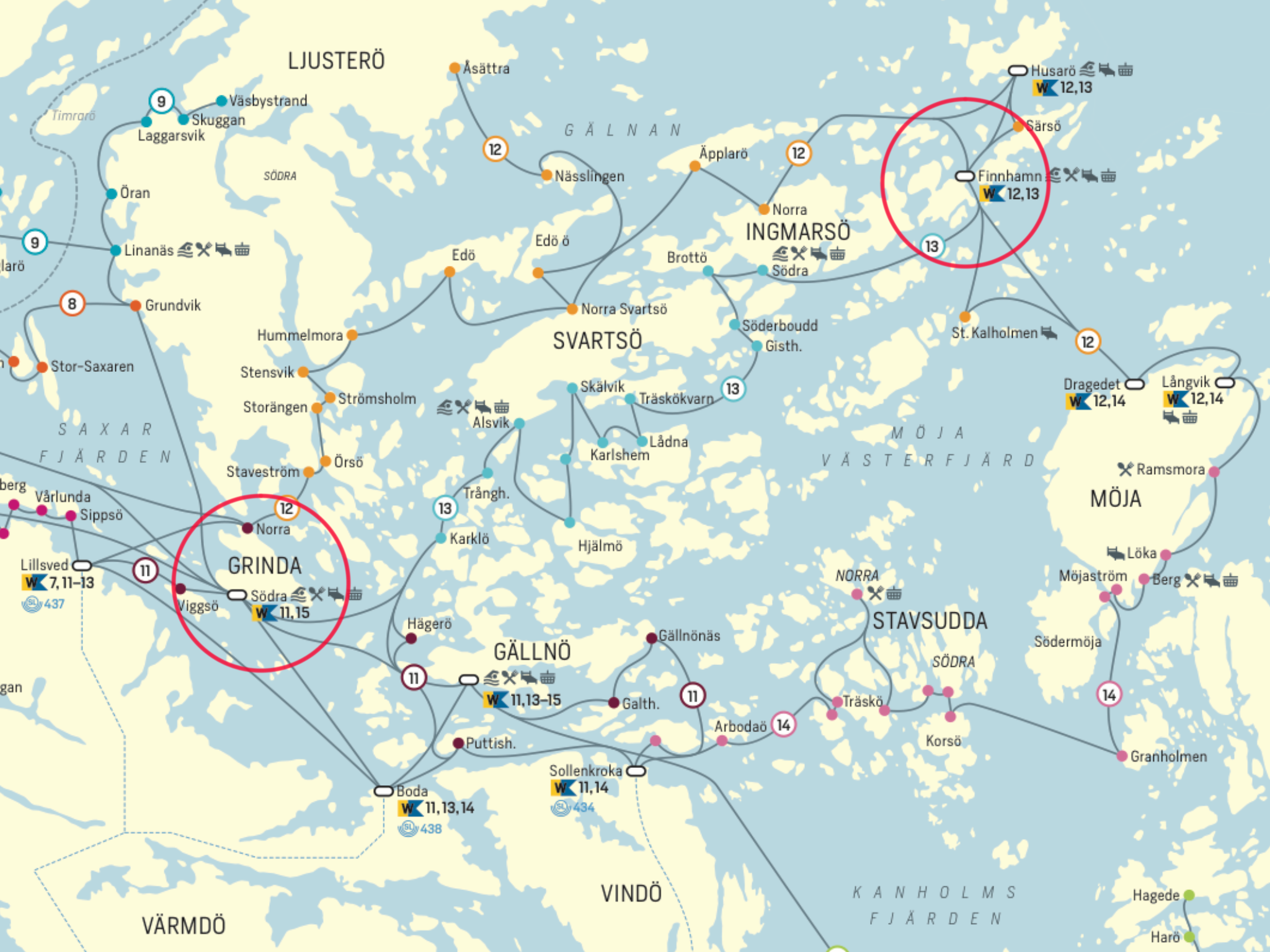For the most part, the Vånö followed the #12 route on this map; our destination: Finnhamn:
