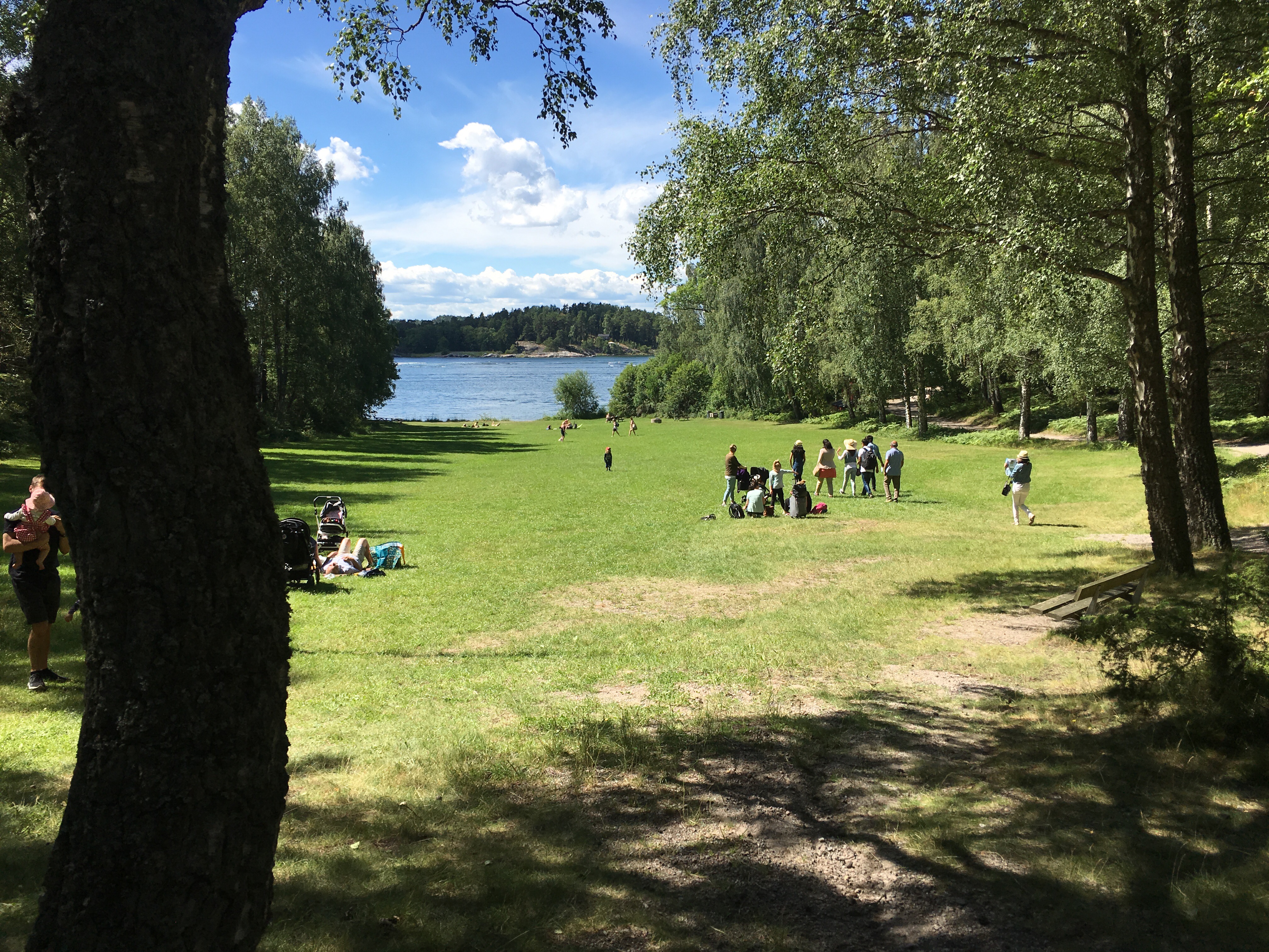The next morning, Friday, we walked back down to the ferry dock on the south side of the island where weekend visitors had just disembarked. The Stockholmers love to spread out blankets and picnic and there’s plenty of room here to do that and let the kids run wild.