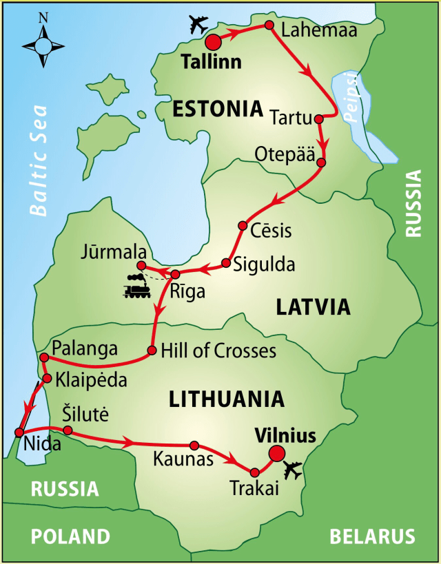 Twelve of us are on the unguided tour, but we are traveling half the way with another group of about the same number who are on a guided tour. We will be on the same general daily plan until Riga, Latvia, where we will leave them; the rest of us, the unguided tour group, will be on our own after that with just a mini-bus and driver to transport our luggage from hotel to hotel. Here’s our route, part in the bus, part on bicycle: