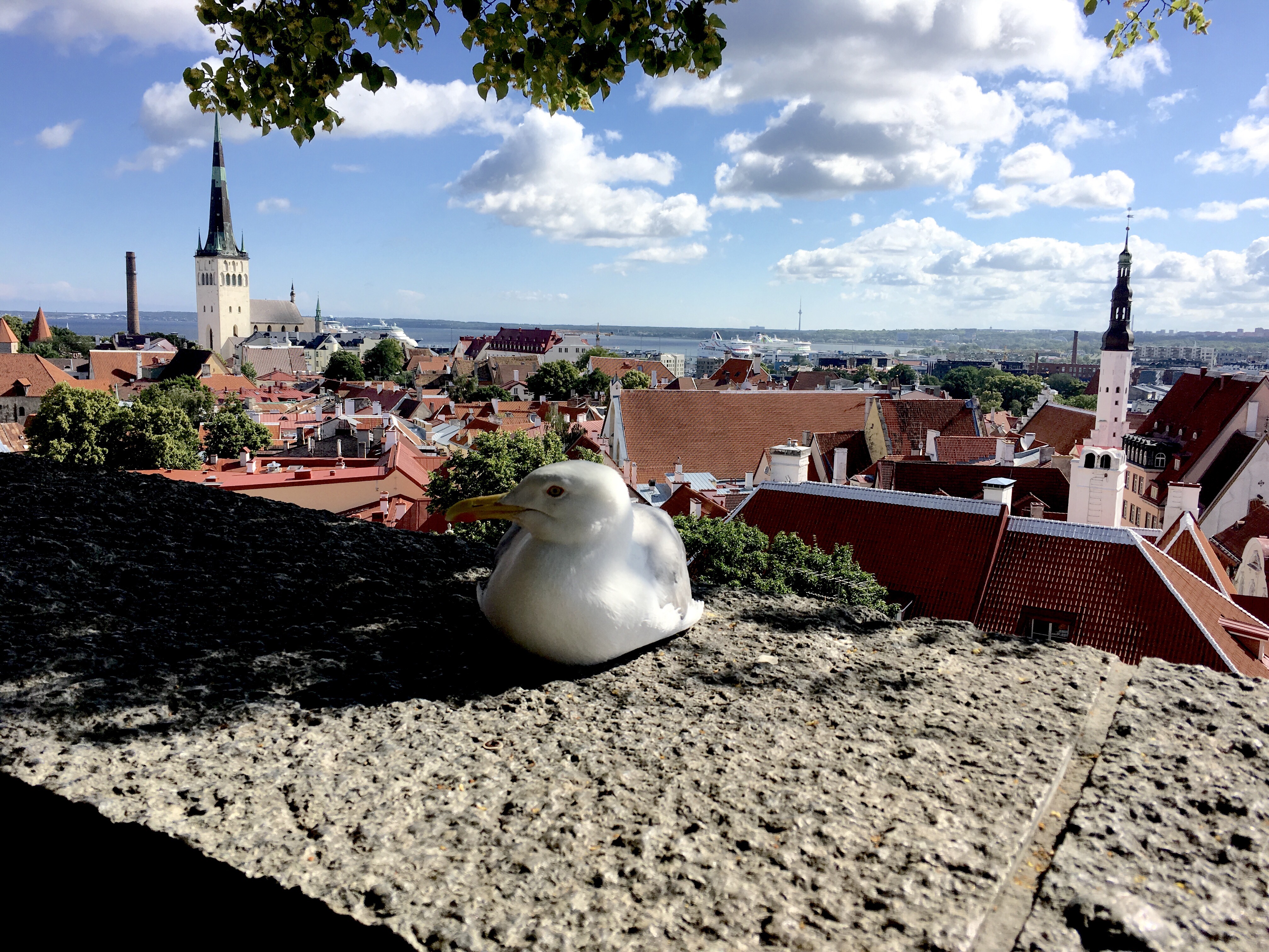 We spent one day and two nights in Tallinn which, consequently, limited our sight-seeing to the old town, that is, the historical walled city and the castle above it on Toompea Hill. Tallinn is a popular cruiseship destination and four ships were in port, so we started out early and rushed to get ahead of the crowds by hiking straight up to the lookout points on Toompea Hill. I think we even startled the birds with our early arrival, although they weren’t too shaken.