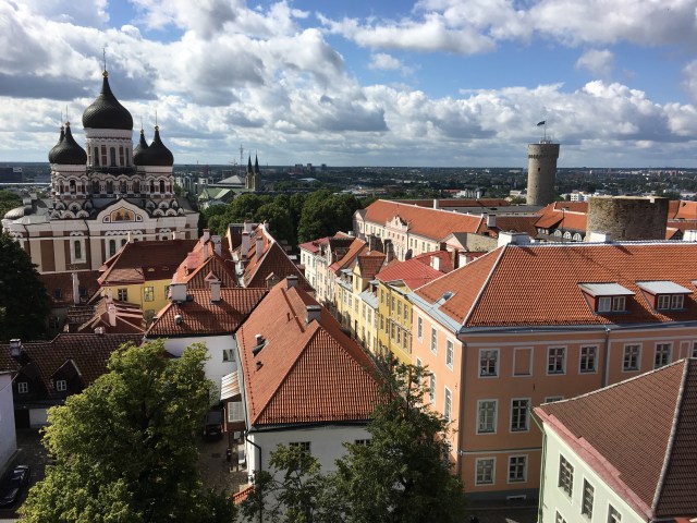 Our flight from Stockholm’s Arlanda airport barely had time to level off before it was time to descend. I took this photo of Tallinn as we were on final approach. In the foreground, you can see the Soviet-era apartment buildings of the suburbs with the more modern downtown in the distance. If you look closely, you might also be able to make out the old town with its castle and church steeples in the upper left. By the way, Lennart Meri Tallinn Airport (f/k/a Ulemiste Airport), which has only a single runway, is the most incredible and modern terminal we have ever been in.