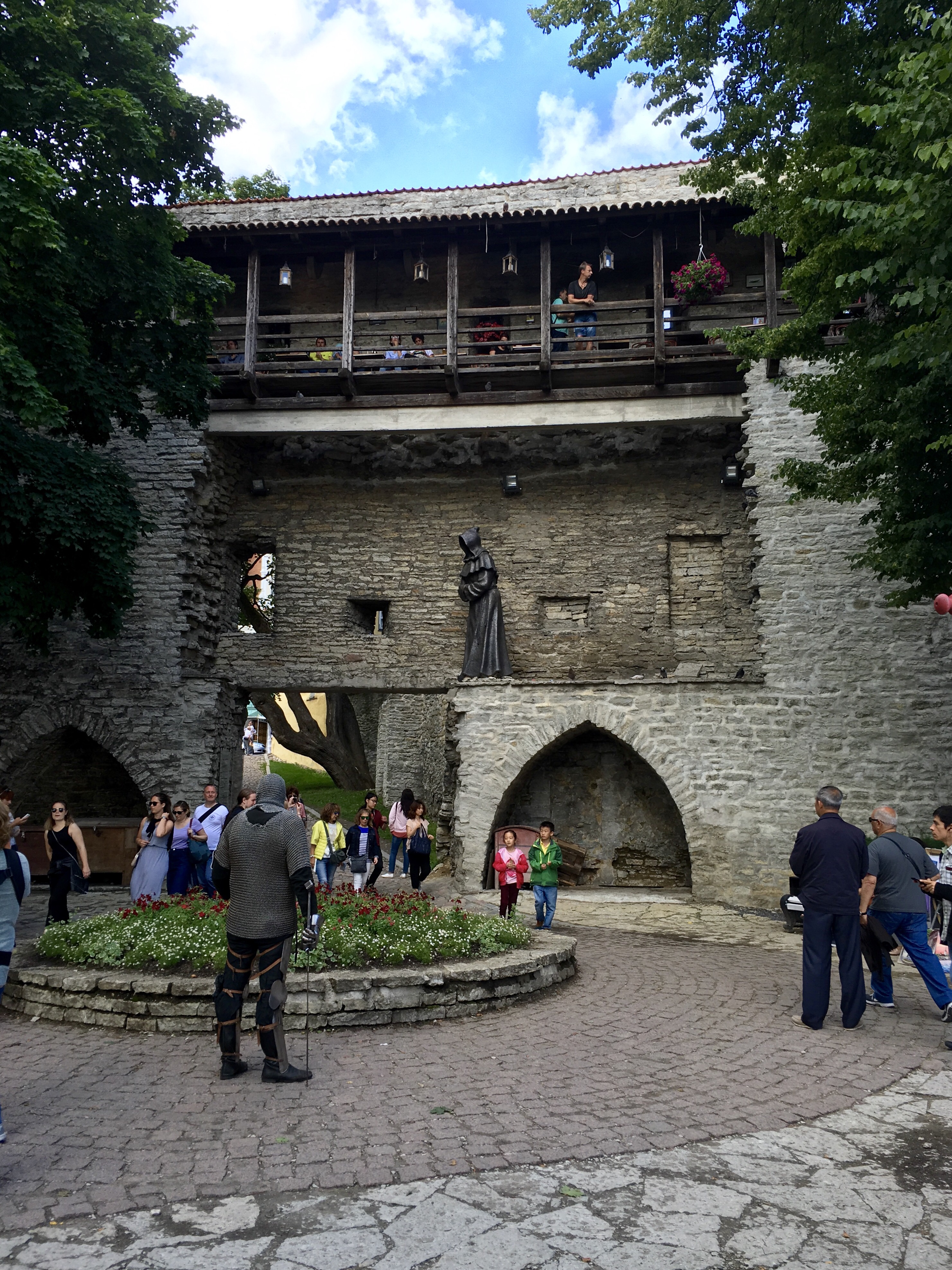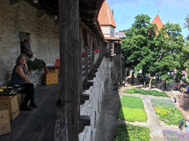 …to the “Danish King’s Garden.” The guide books tell stories about this place, but they’re probably all fictitious, so I’ll spare you. Today, it’s a mainly a somewhat Disneyesque, reconstructed tourist attraction, but we noticed there was a cafe up above that looked interesting…
