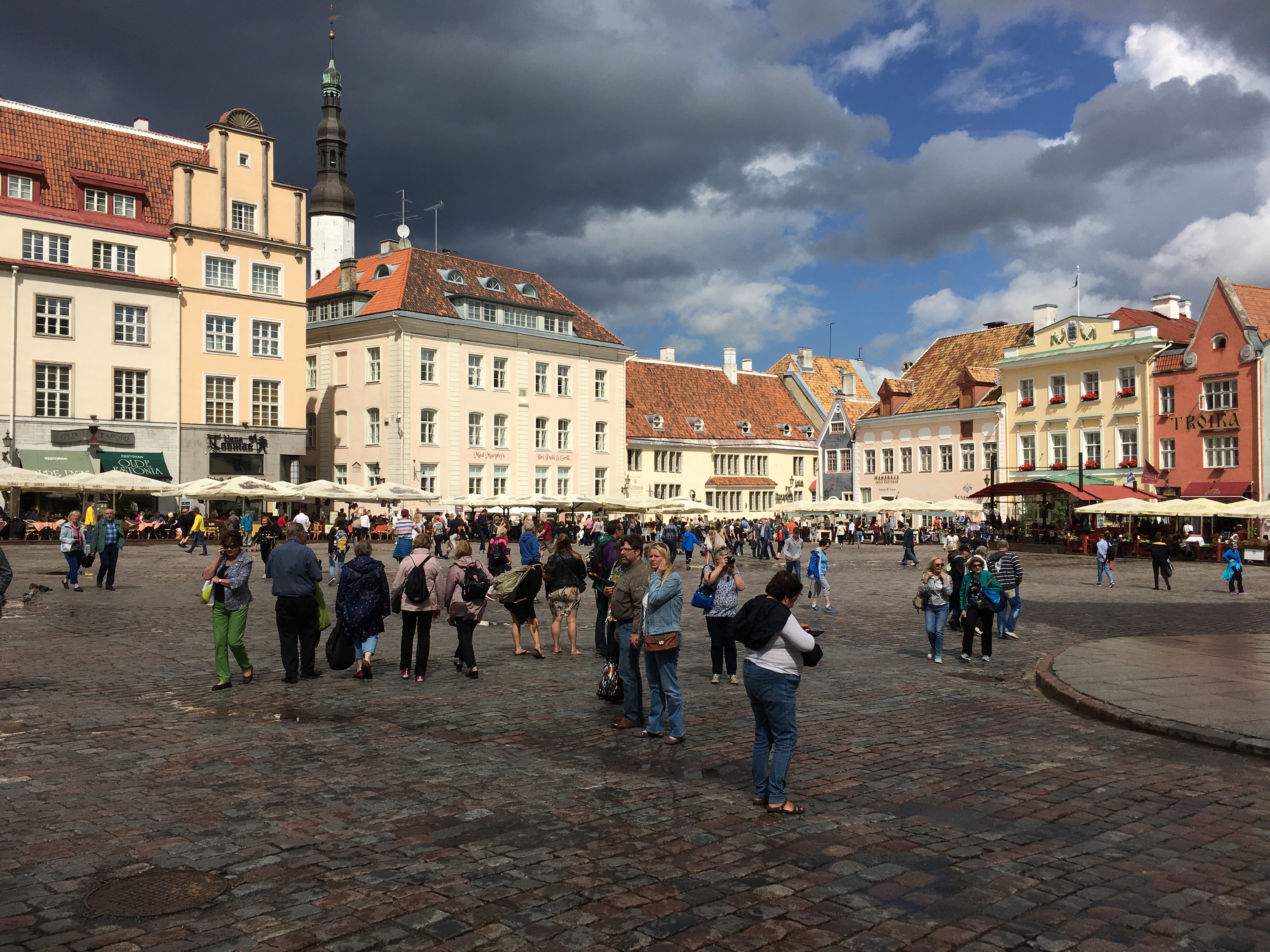 We finished the day by walking across the Raekoja Plats, the town hall square, as rain clouds closed in.
