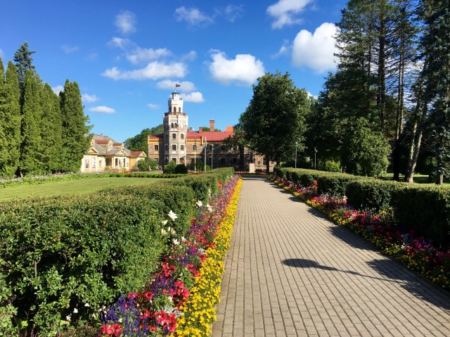 After cycling through the town of Sigulda, we stopped at yet another manor house and its nearby castle. Like the last one we saw, this manor house was built in the 1870s.