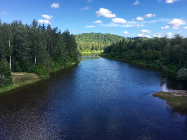Our fourth biking day was the shortest distance (about 13 miles, 21 km) and the best ride so far; good weather, too. Most of the day was spent in Latvia’s Gauja National Park, the country’s largest, which takes its name from the Gauja River that flows through it.