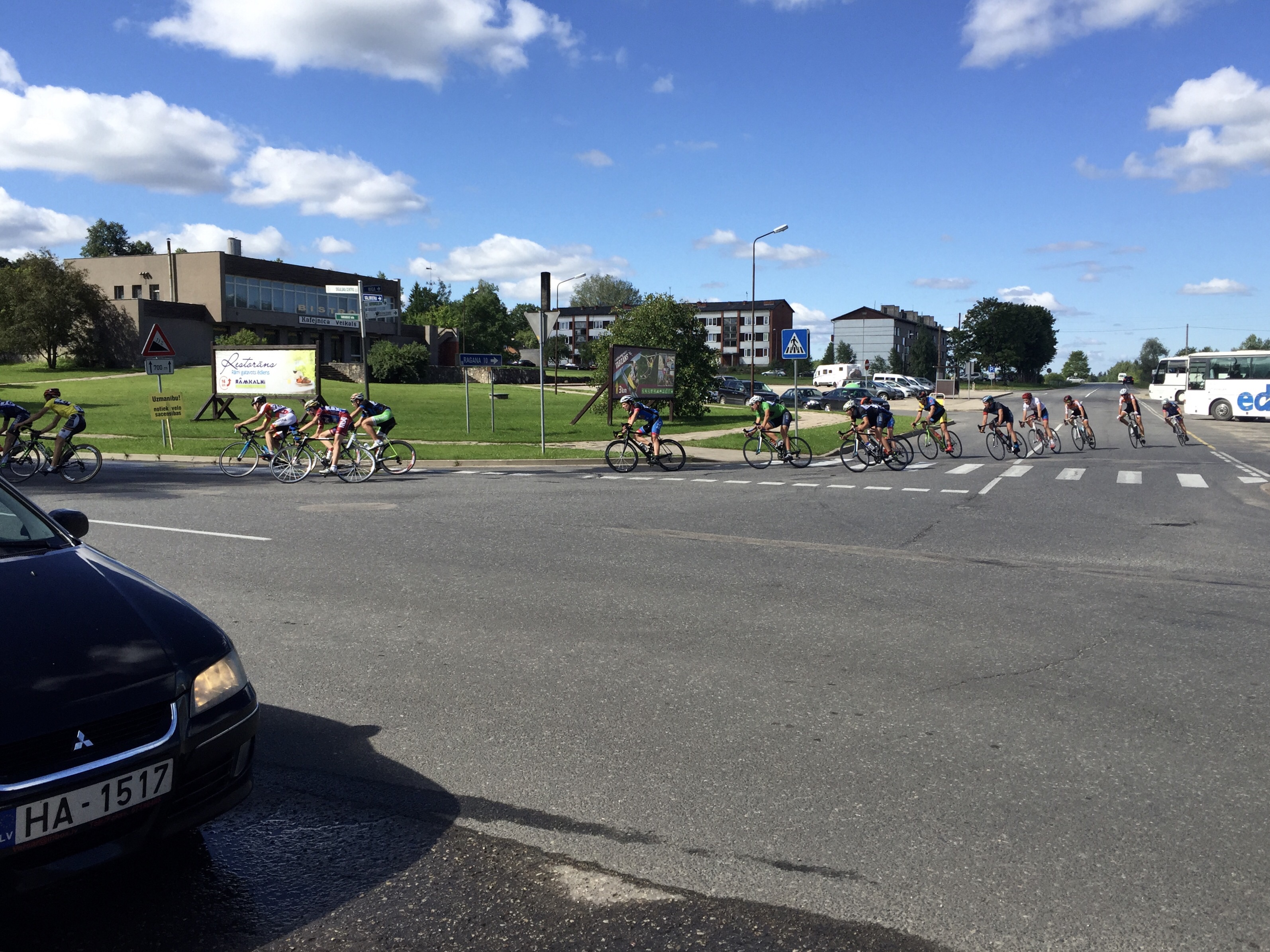 Gutman’s Cave is at the bottom of the Gauja River Valley at this location, so from here we started up the longest and steepest incline of the trip – just as a cycling race was making its way down! Look out below!