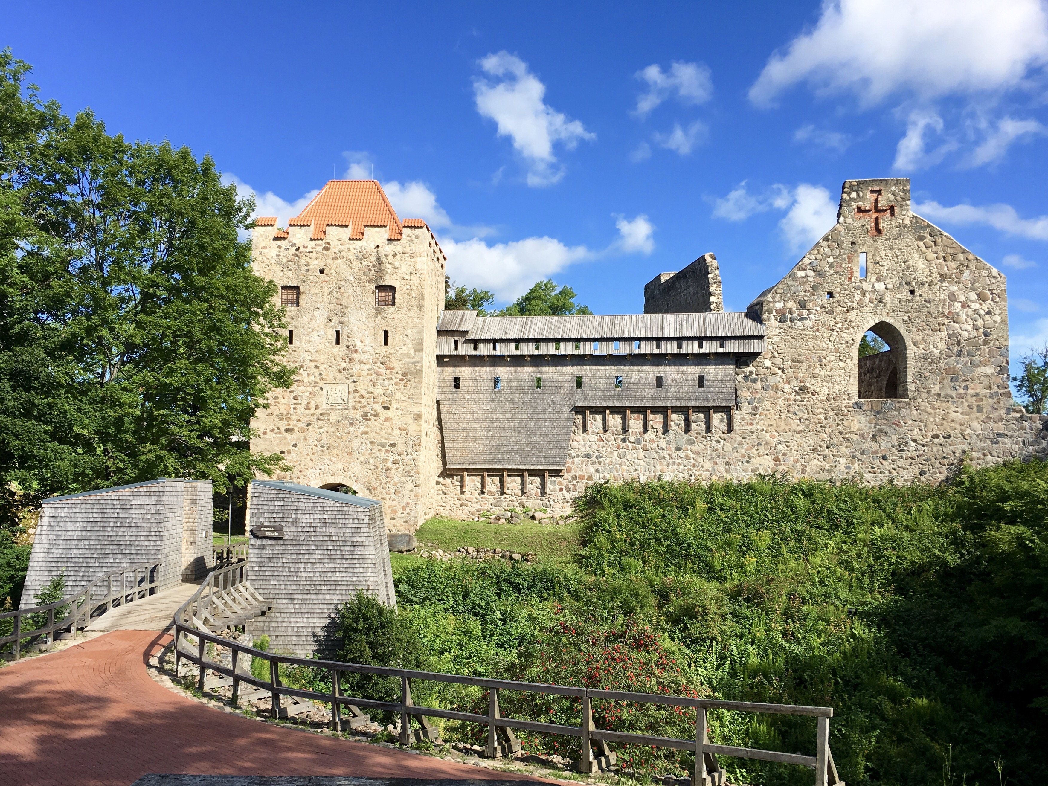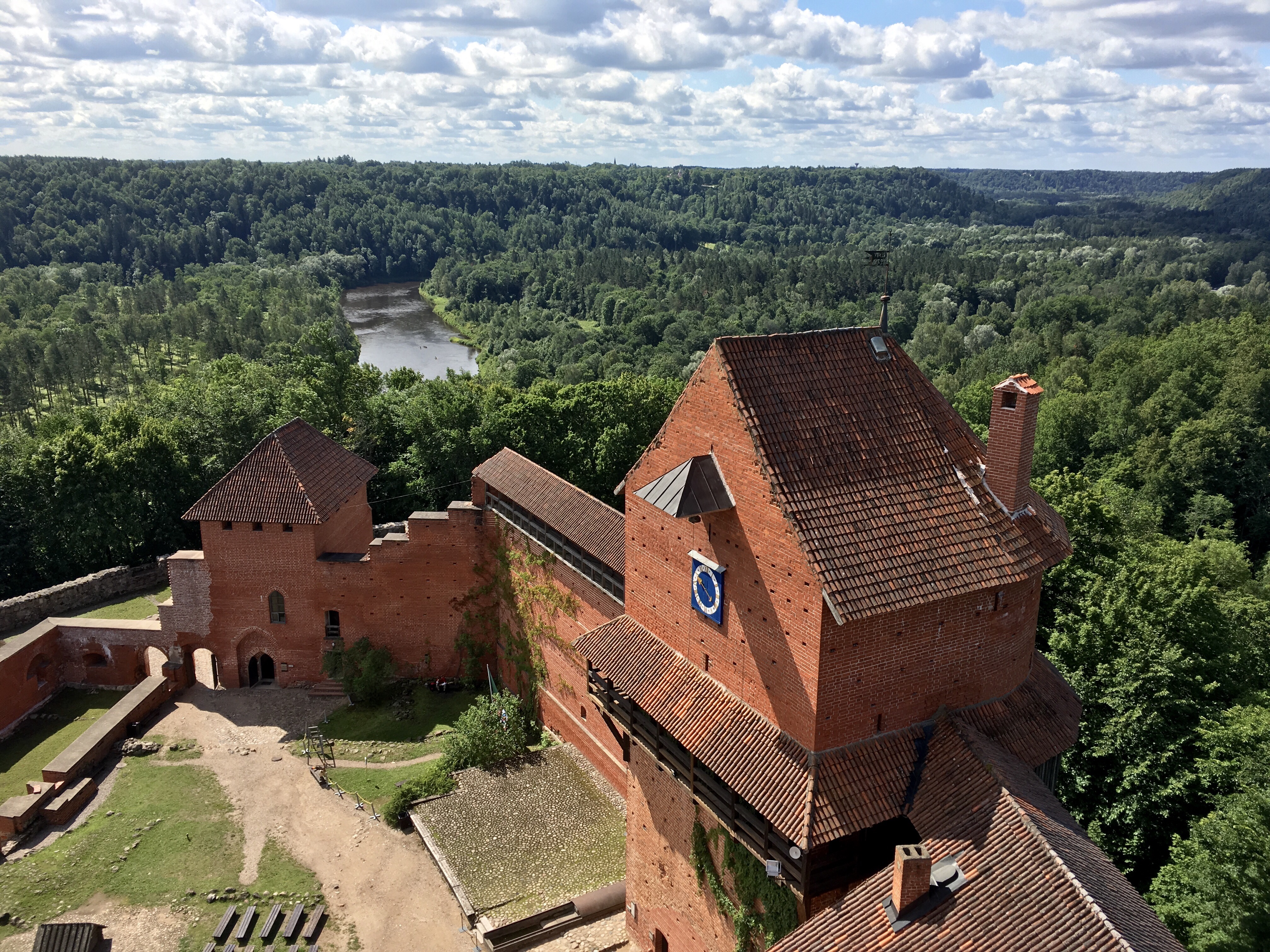 …in order to take in the view of the Gauja River below. That part of the castle with the clock on it – now mostly a reconstruction – was added in the 1400s for additional defense from cannon attack from the west, following the invention of gunpowder. The castle certainly dominated the valley.