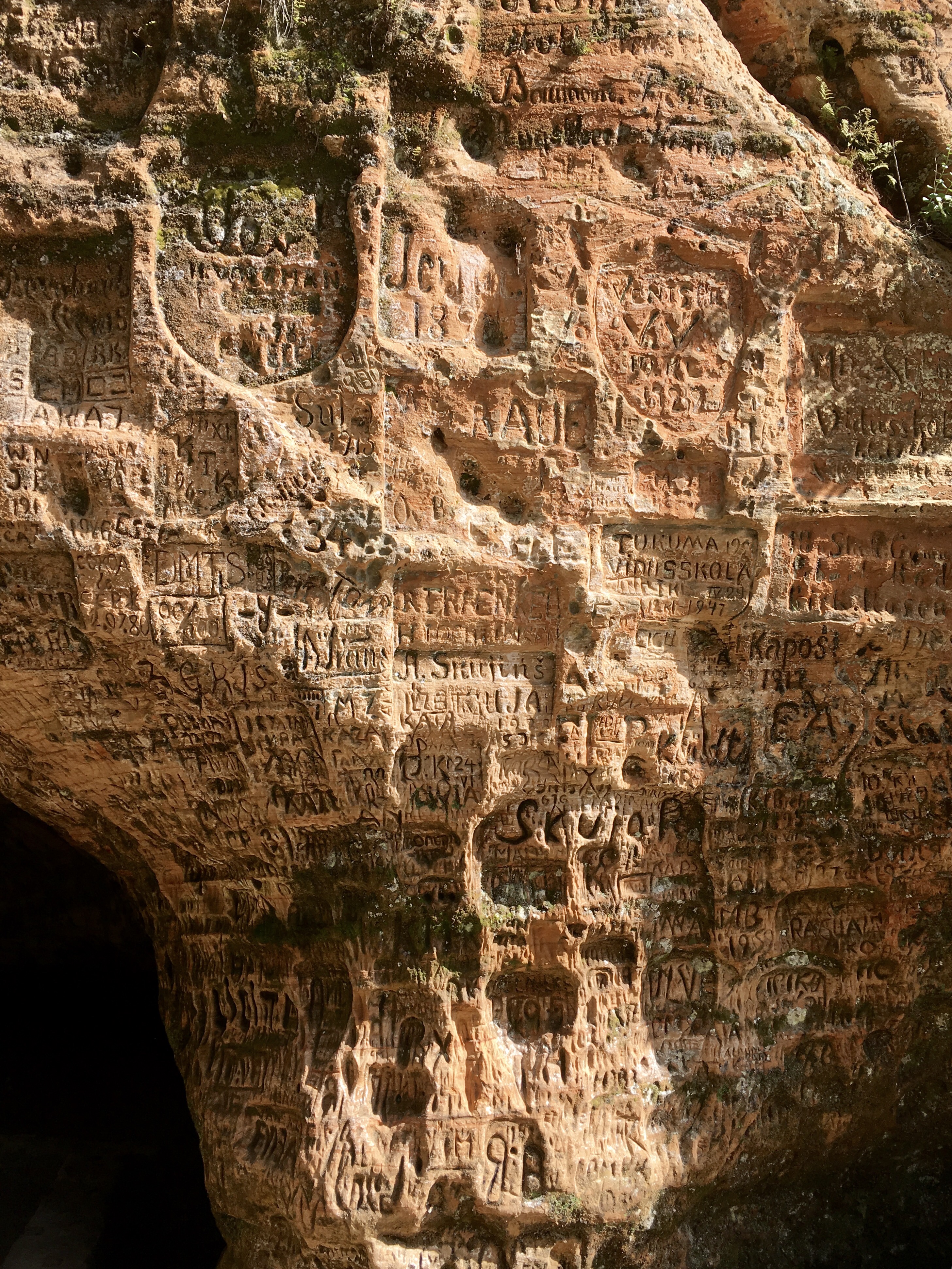 Gutman’s Cave is supposedly Latvia’s oldest “tourist attraction.” Although it is said to be the Baltic countries’ widest and highest cave at 36 feet high and 30 feet wide, it’s not very deep. The cave is the result of the erosion of the sandstone bank of the Gauja River bed and is covered with graffiti going back to the 1600s.