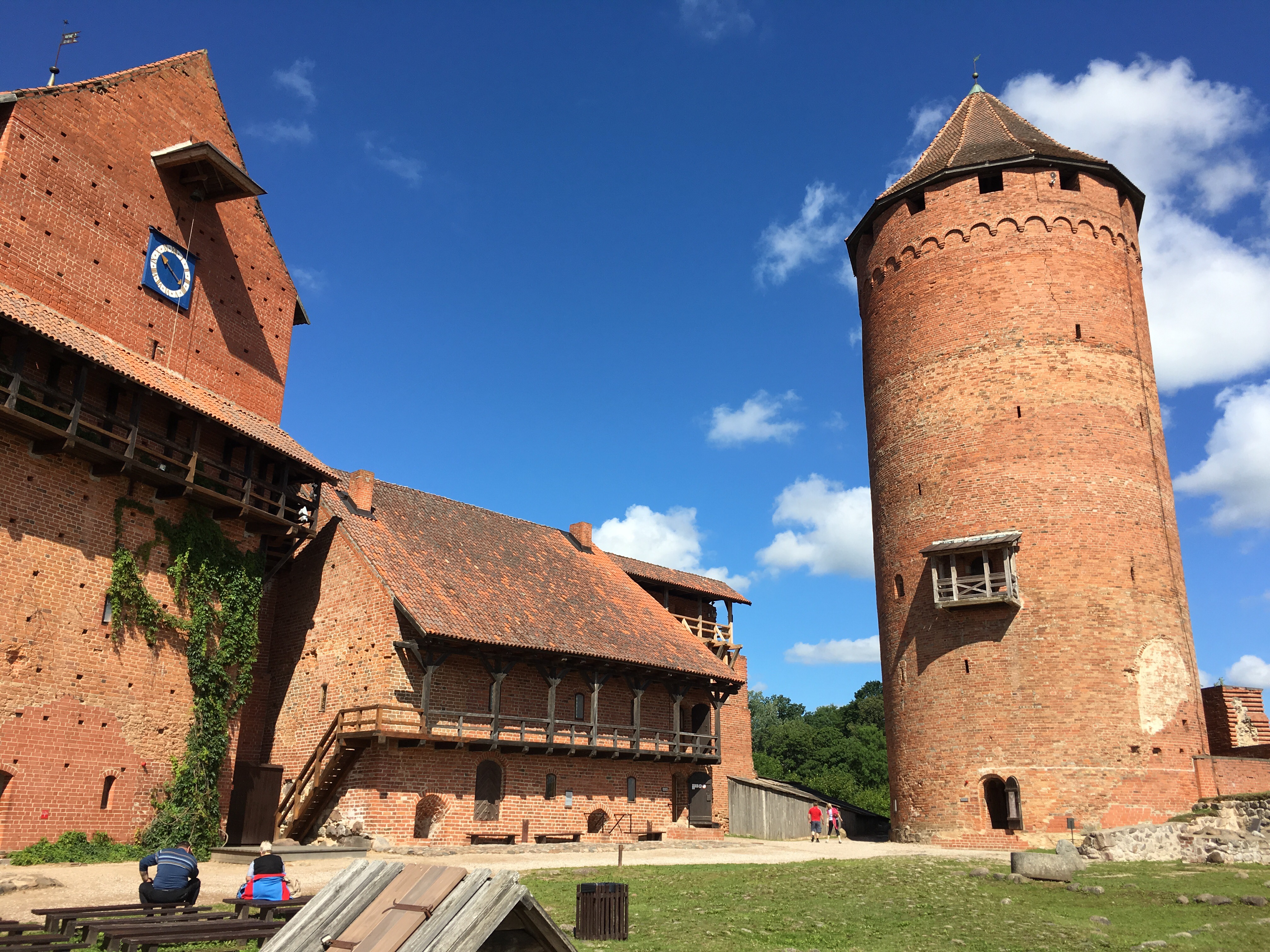 We had some time at the top, awaiting the rest of our group, so we toured Turaida Castle, another bastion built by German crusaders in the early 1200s. The castle survived the centuries until it burned in the 1700s and was abandoned. The main tower was mostly still intact, however, with the exception of the upper 1/4 and the roof which, as you can see, has since been reconstructed. We climbed to the top…