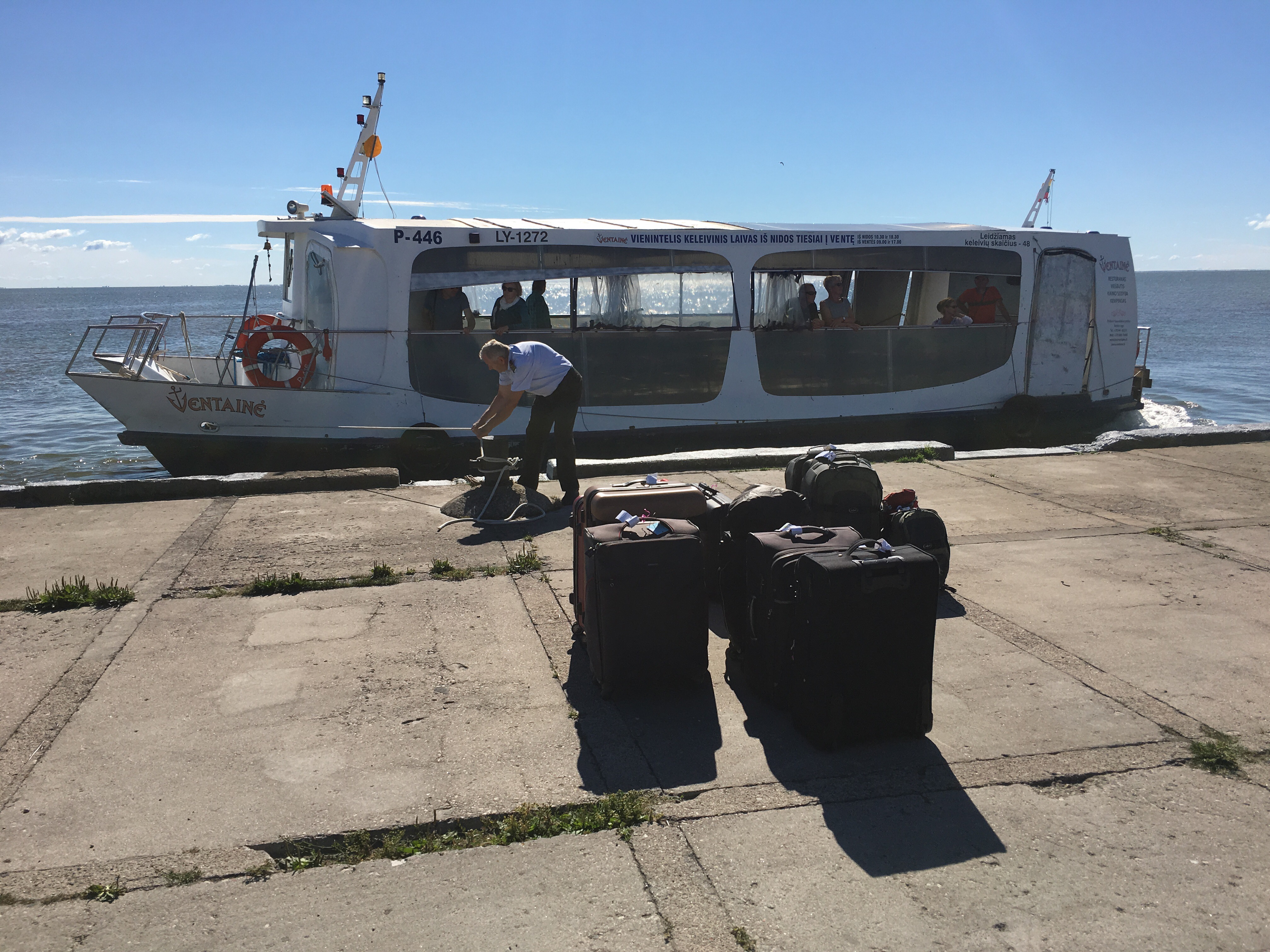 Our eighth biking day – and third day on our own along the Lithuanian coast – started with loading our luggage into a local taxi for transport to the Nida ferry dock. We all rode our bikes there and waited for the ferry to take us across the Curonian Lagoon to Ventė on the mainland.