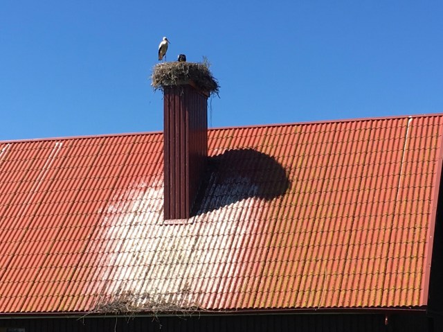 Once ashore, we pedaled south to the overlook at the point, then headed back north to the village of Kintai. On the way, we saw several storks. I wonder how corrosive that guano is. I wouldn’t want them clogging up my chimney.