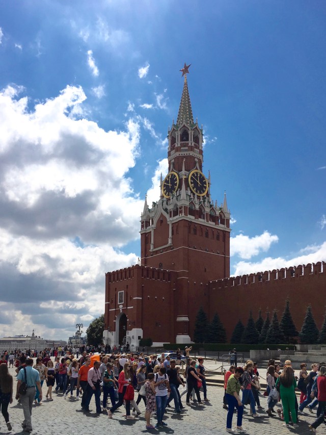Red Square is a little bigger than 18 acres. Traditionally, it was a market square, but it has been used over the years for all sorts of things: coronations, military parades, protests, you name it. Together with the Kremlin, Red Square is now a UNESCO World Heritage site. By the way, the “Red” in Red Square does not relate to communism or the color of the Kremlin which was white at the time of the naming of the square. It seems that the name comes from confusion surrounding the Cyrillic word that was used in years past: красивая (krasivaya, meaning “beautiful”) and красная (krasnaya, meaning “red”). At any rate, I’ve heard and read conflicting stories, but they all agree that it has nothing to do with communism.