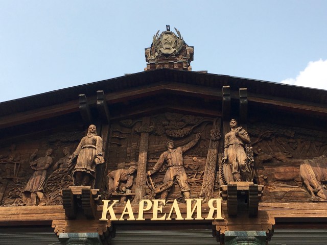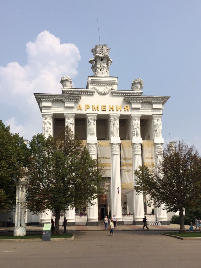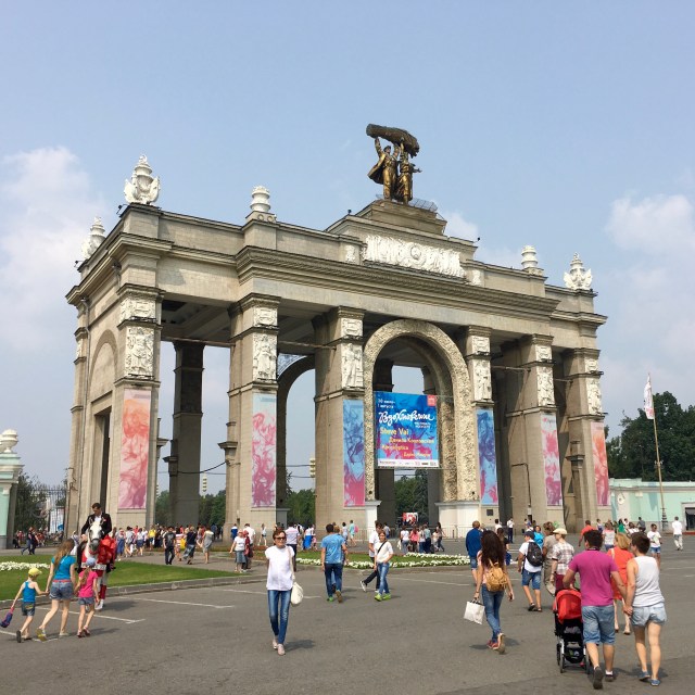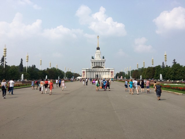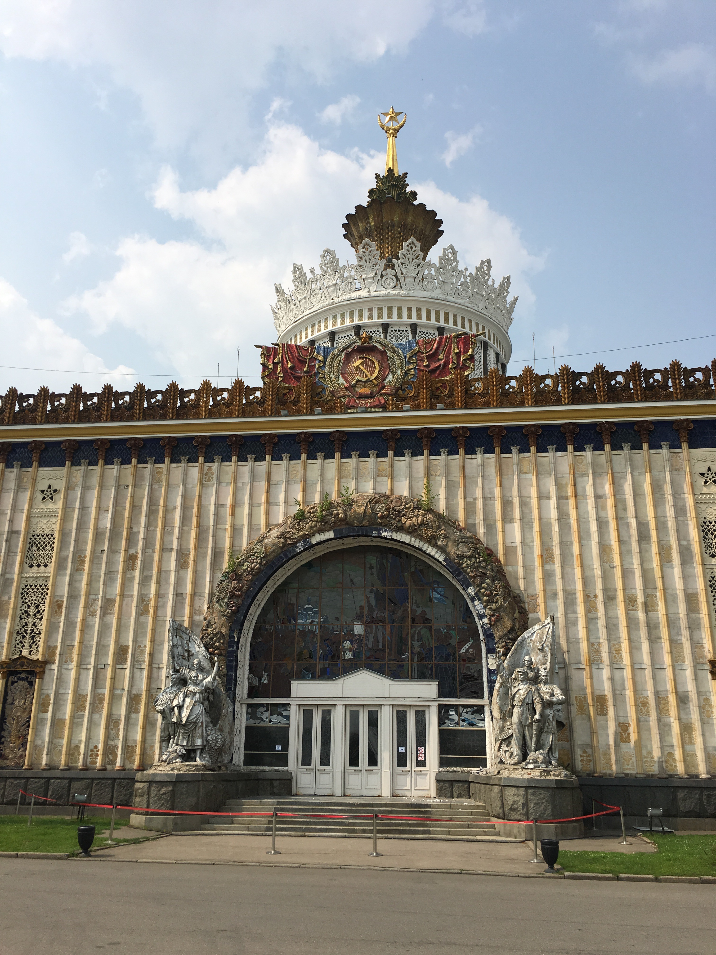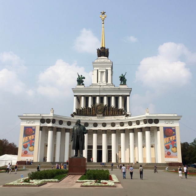 Here’s the Central Pavillion, dedicated to the history and achievements of the Soviet Union, as seen from the entry arch: