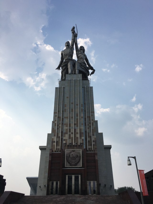 This sculpture was exhibited at the 1937 World’s Fair in Paris, then moved back here to Moscow afterwards. It epitomizes the aspirations of the Soviet Union, a grandiose empire, built, theoretically, on the labor of the worker and the farmer.