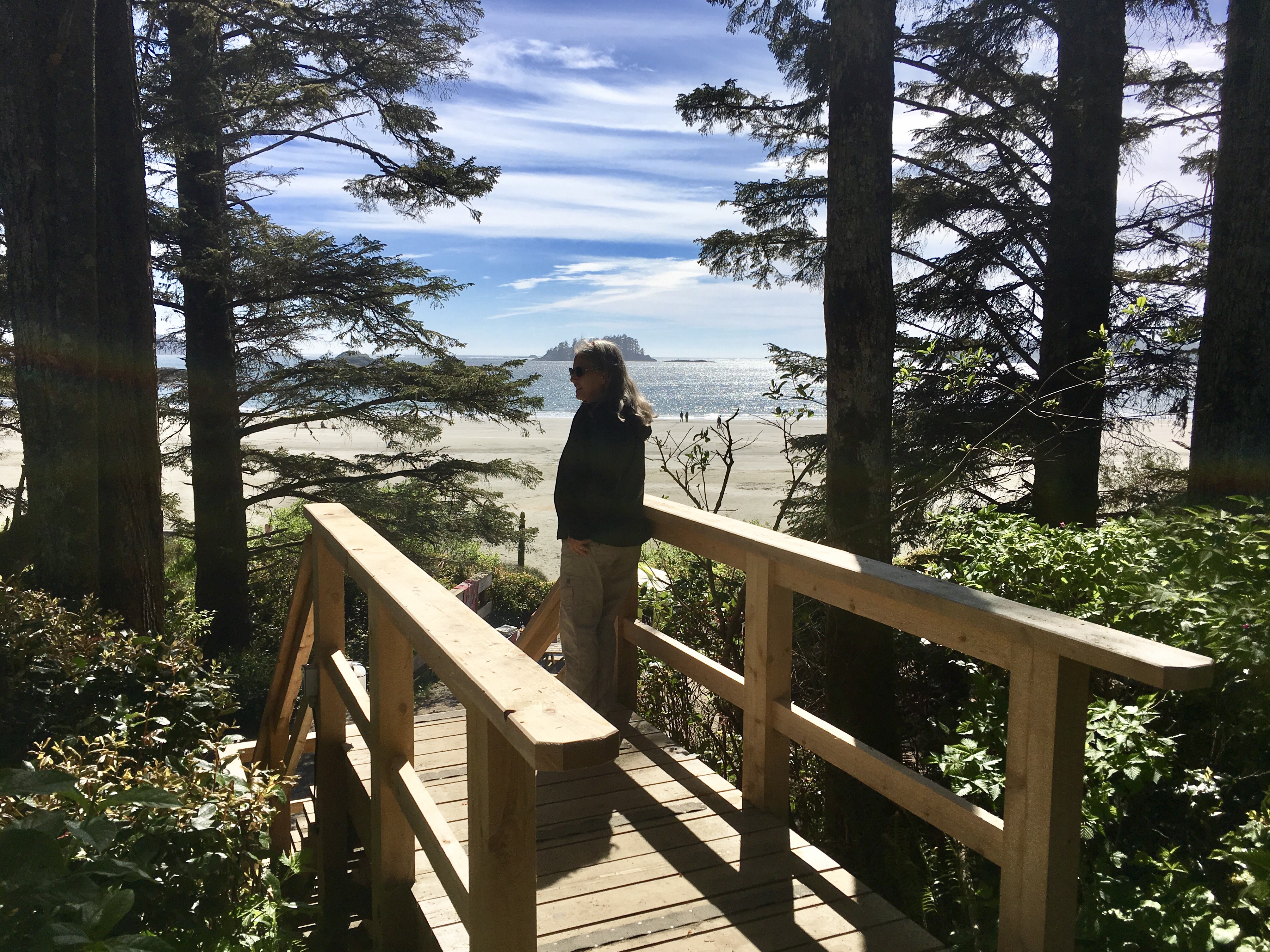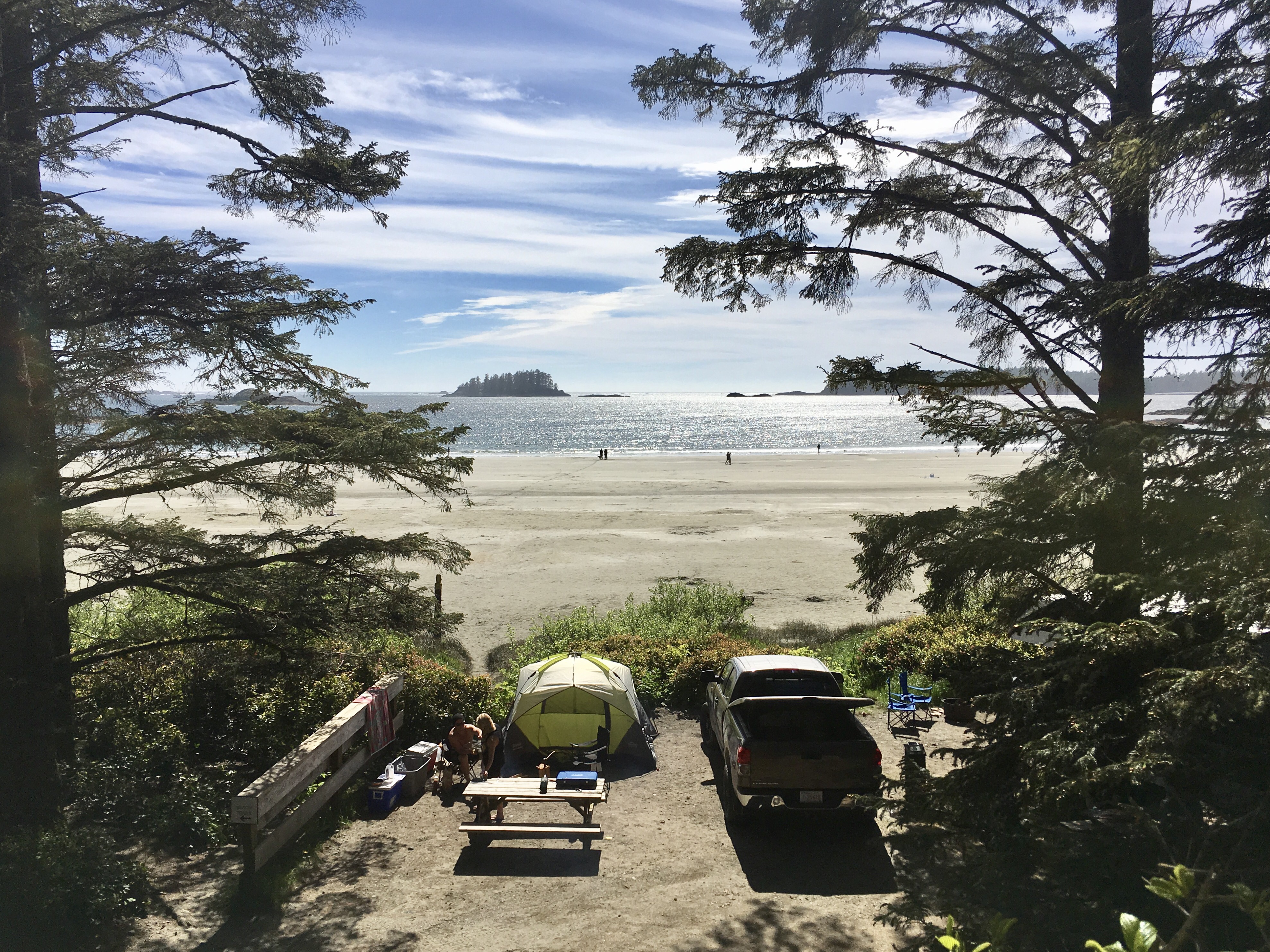 We continued to Port Alberni where BC4 became a winding, narrow, busy 2-lane road over the mountains that run the length of the island. Our destination was 3 hours away at the end of the road: the town of Tofino, and a 4-night stay at Bella Pacifica Campground, right on the beach: