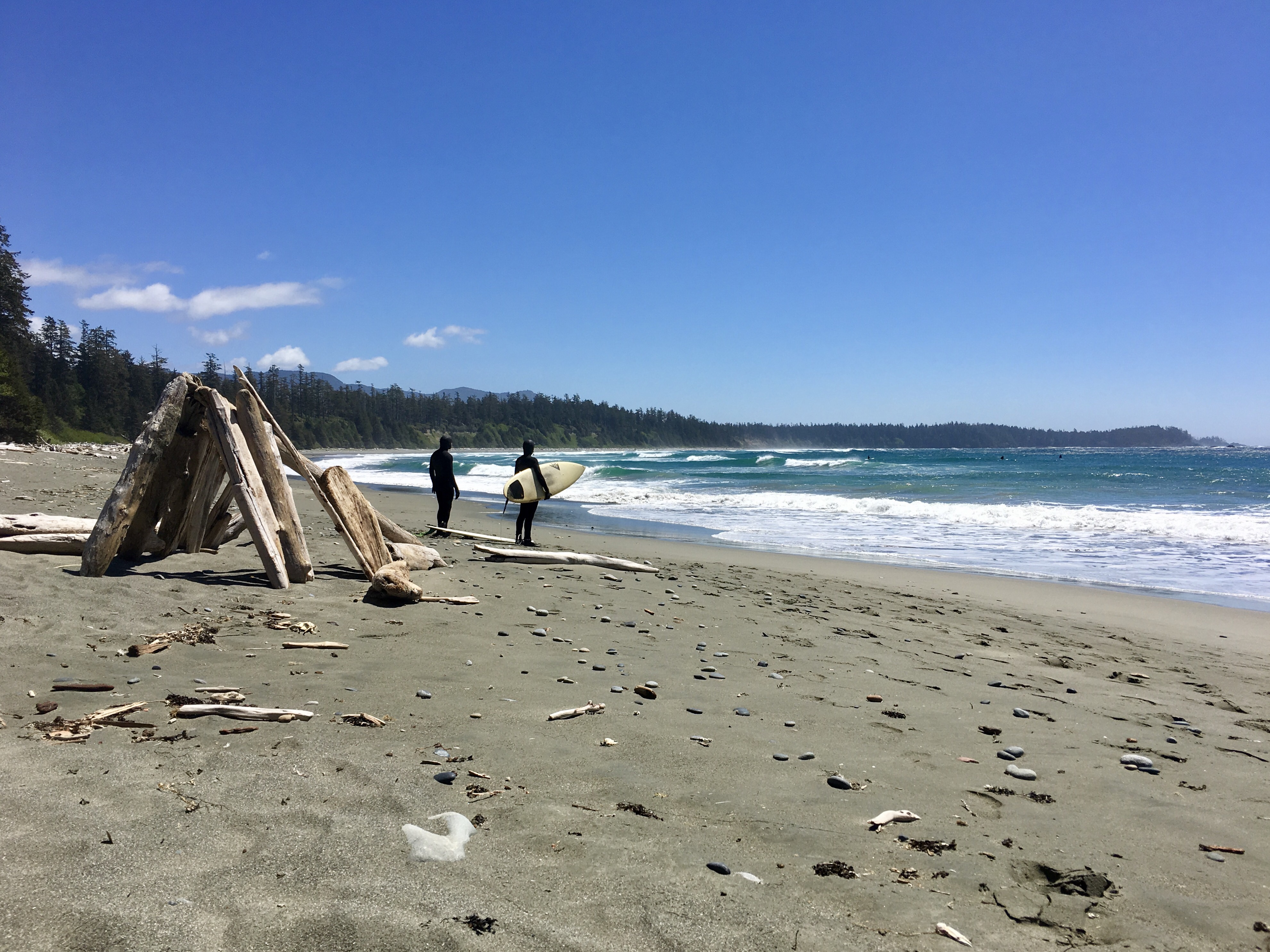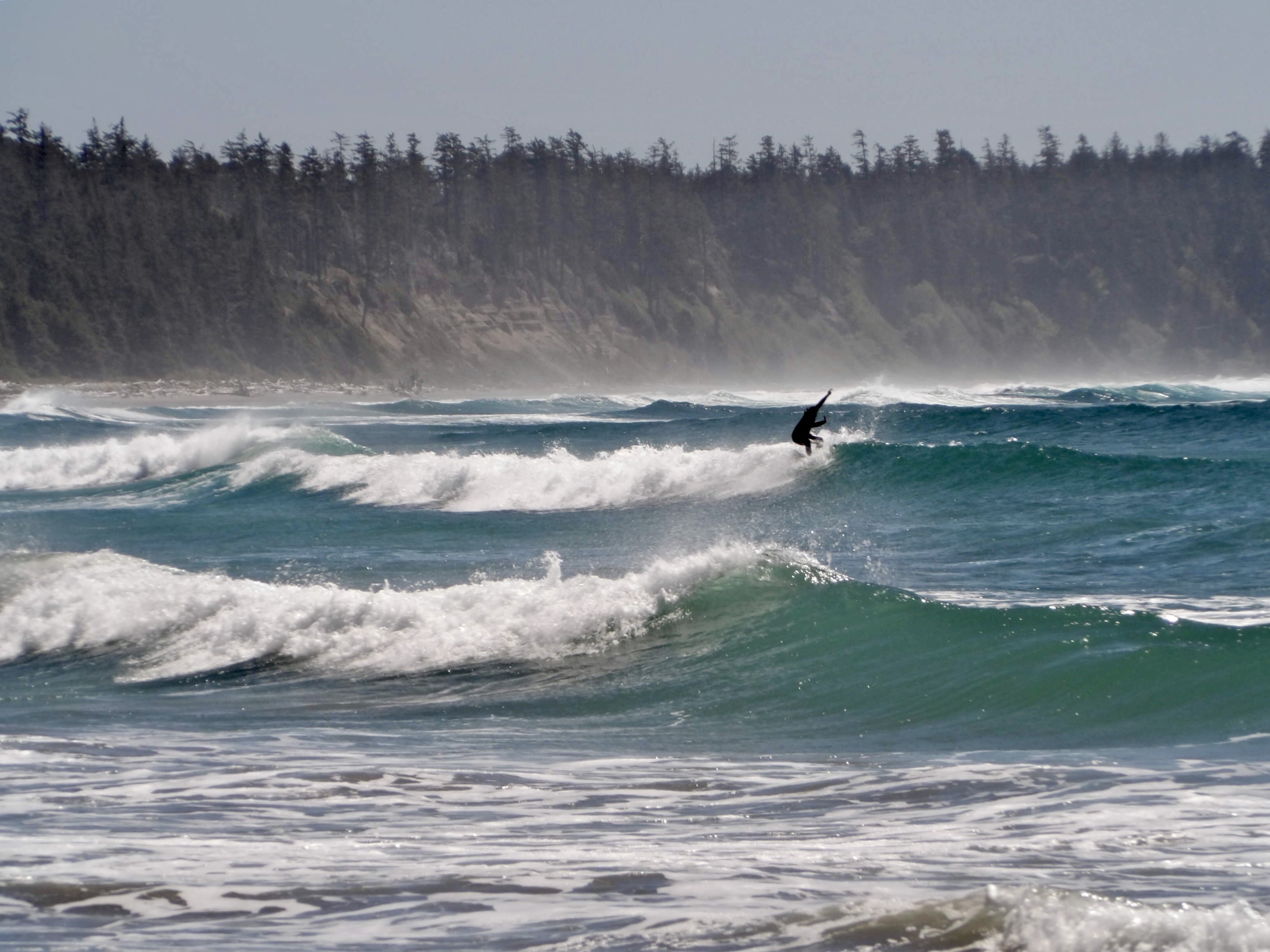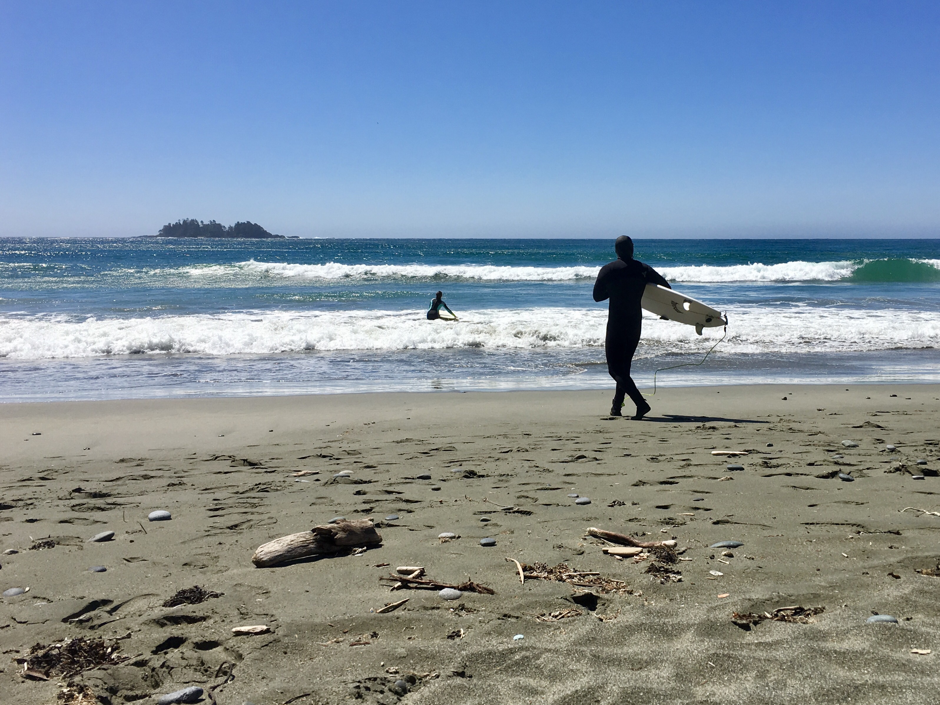 I mentioned in my last post that this part of Vancouver Island is a surfer’s paradise. So much so that one of the tourist maps we picked up at the visitor’s center turned out to be a map of all the best surfing spots and beaches. There are several of them and most are within the Pacific Rim National Park. From south to north they are: Florencia Bay; Wikaninnish Beach; Combers Beach; Long Beach; Cox Bay; the Chesterman Beaches, south and north; and, finally, Mackenzie Beach where we’re camping.