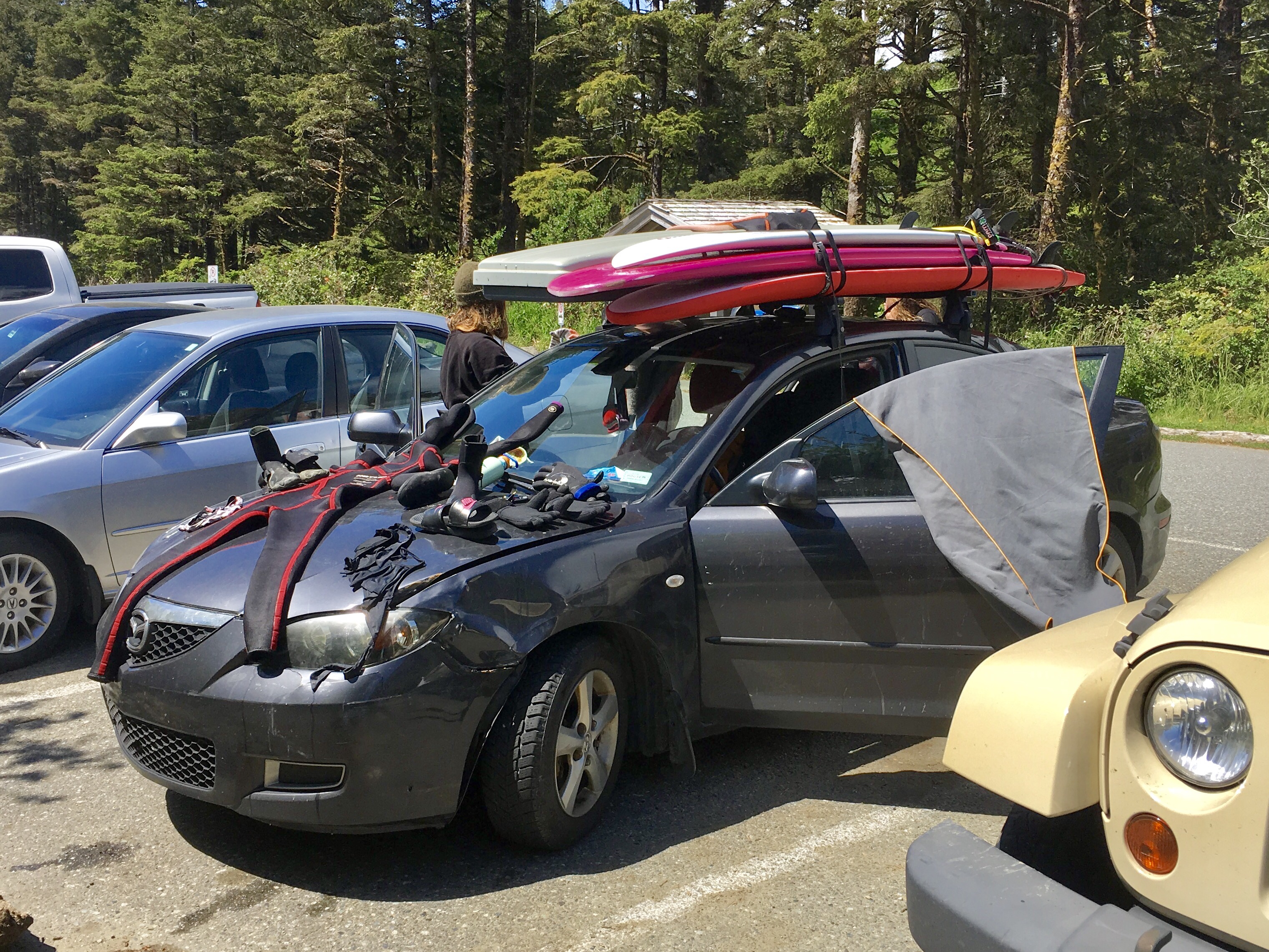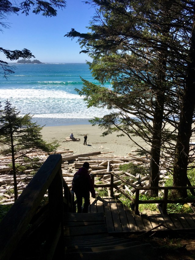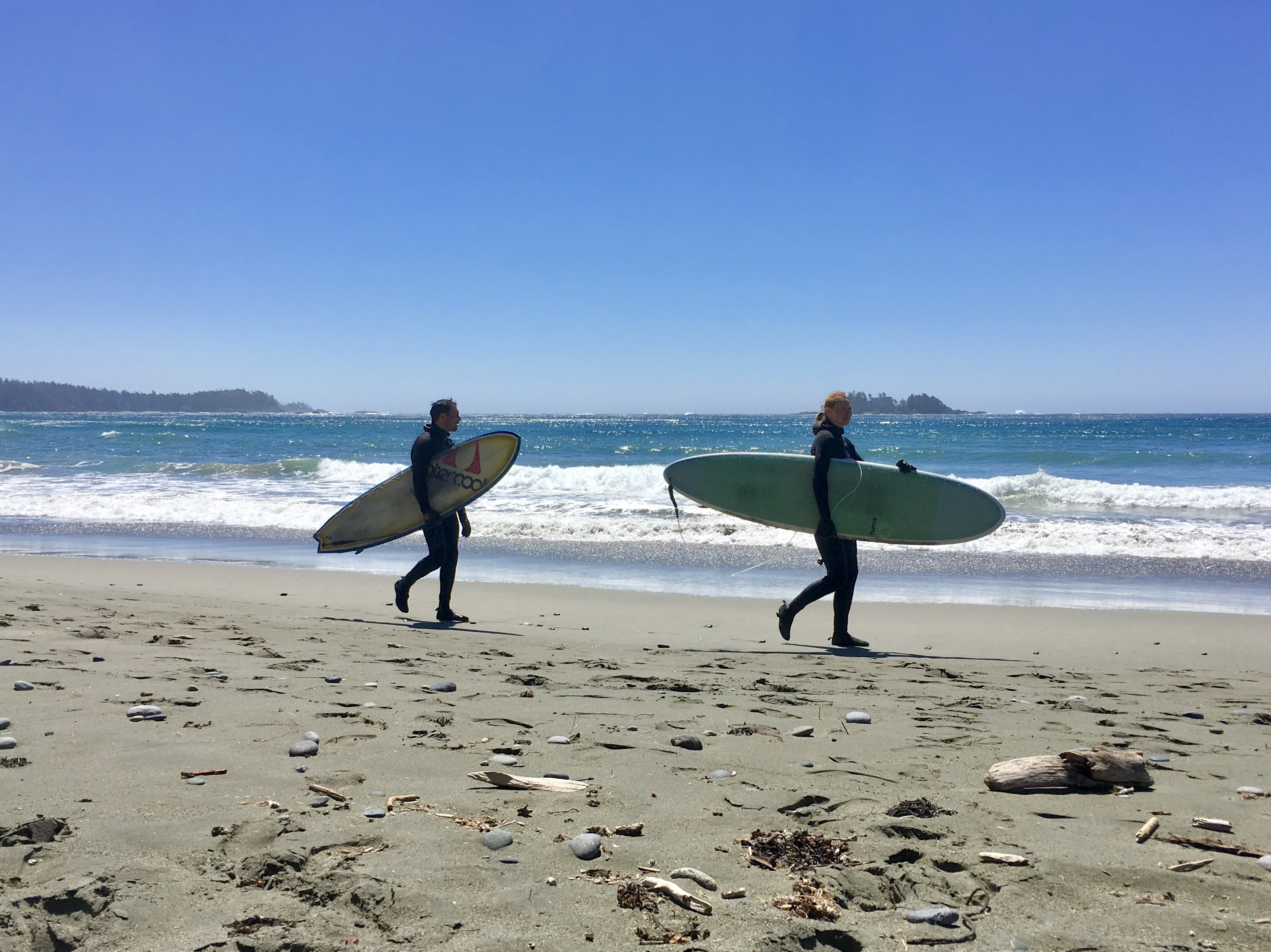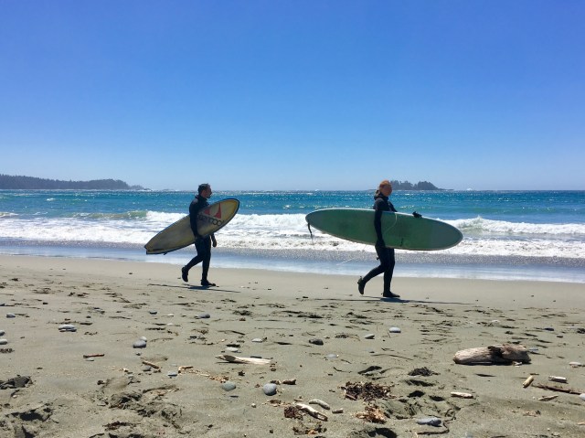 I mentioned in my last post that this part of Vancouver Island is a surfer’s paradise. So much so that one of the tourist maps we picked up at the visitor’s center turned out to be a map of all the best surfing spots and beaches. There are several of them and most are within the Pacific Rim National Park. From south to north they are: Florencia Bay; Wikaninnish Beach; Combers Beach; Long Beach; Cox Bay; the Chesterman Beaches, south and north; and, finally, Mackenzie Beach where we’re camping.