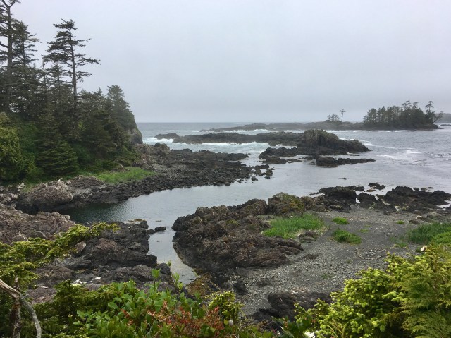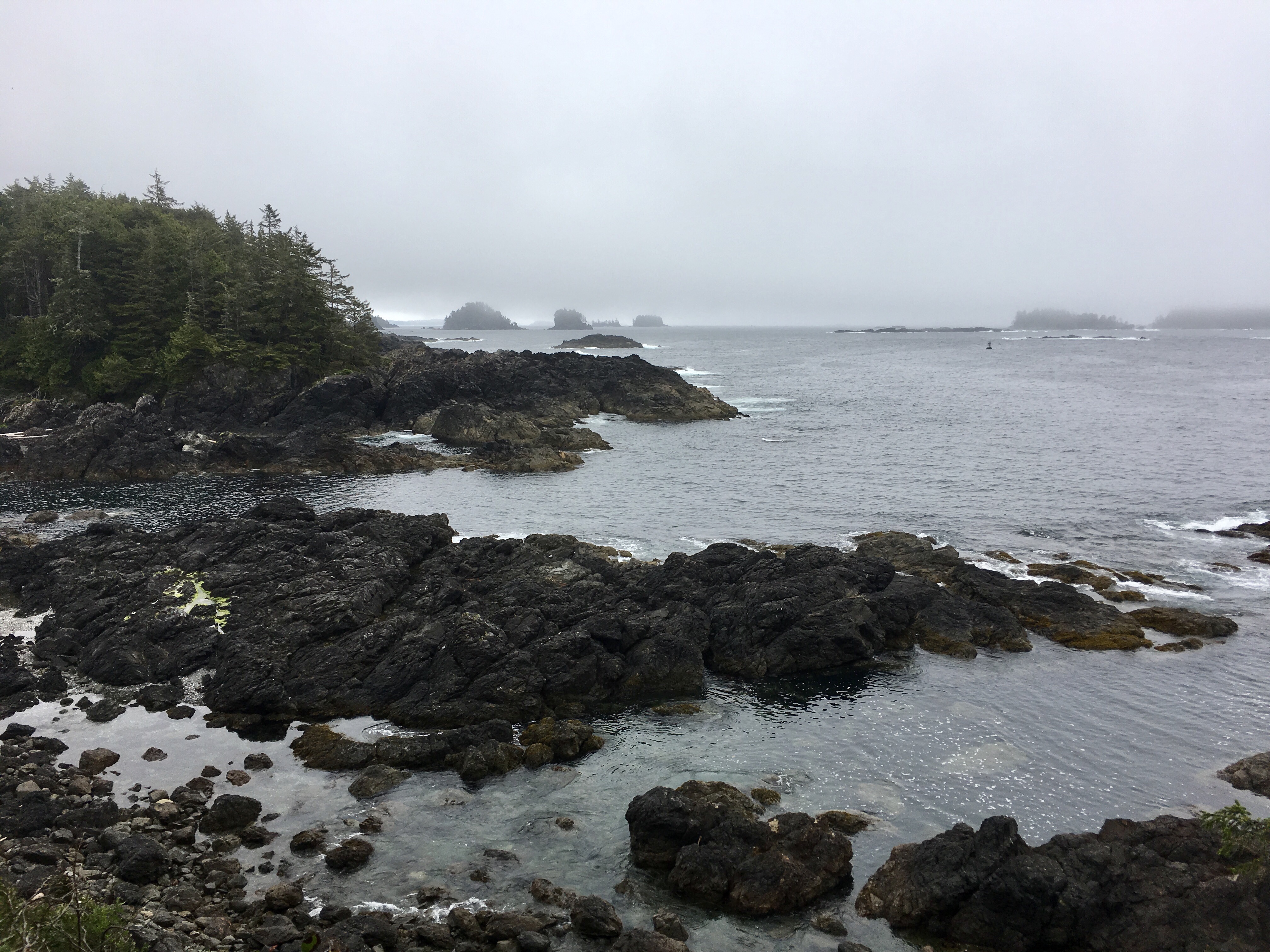 We arrived in Ucluelet in the late morning and drove straight to the parking area for the Lighthouse Loop and got started by hiking to the point. Grey and foggy, just as we anticipated; and there was even a fog horn sounding in the distance.