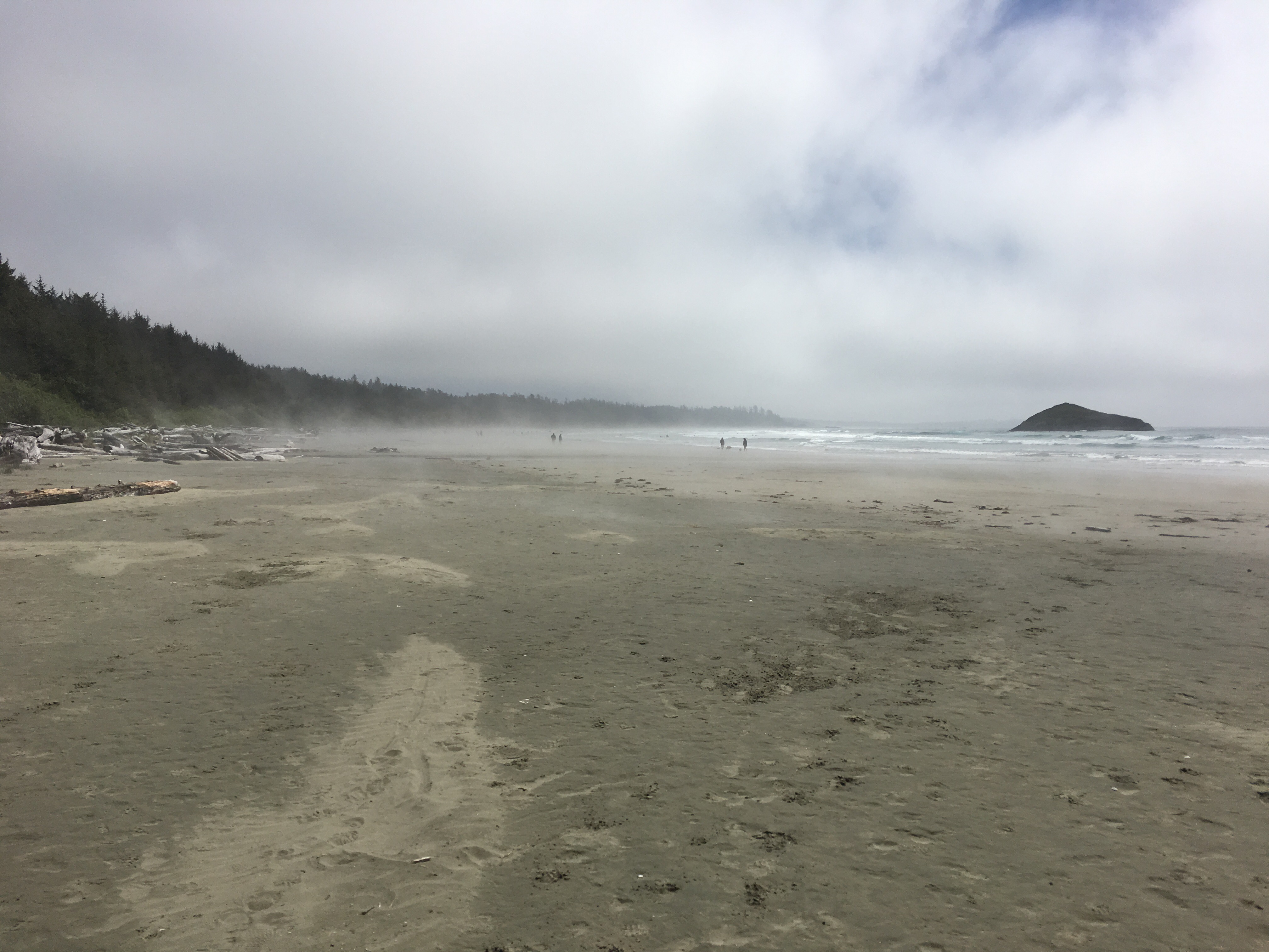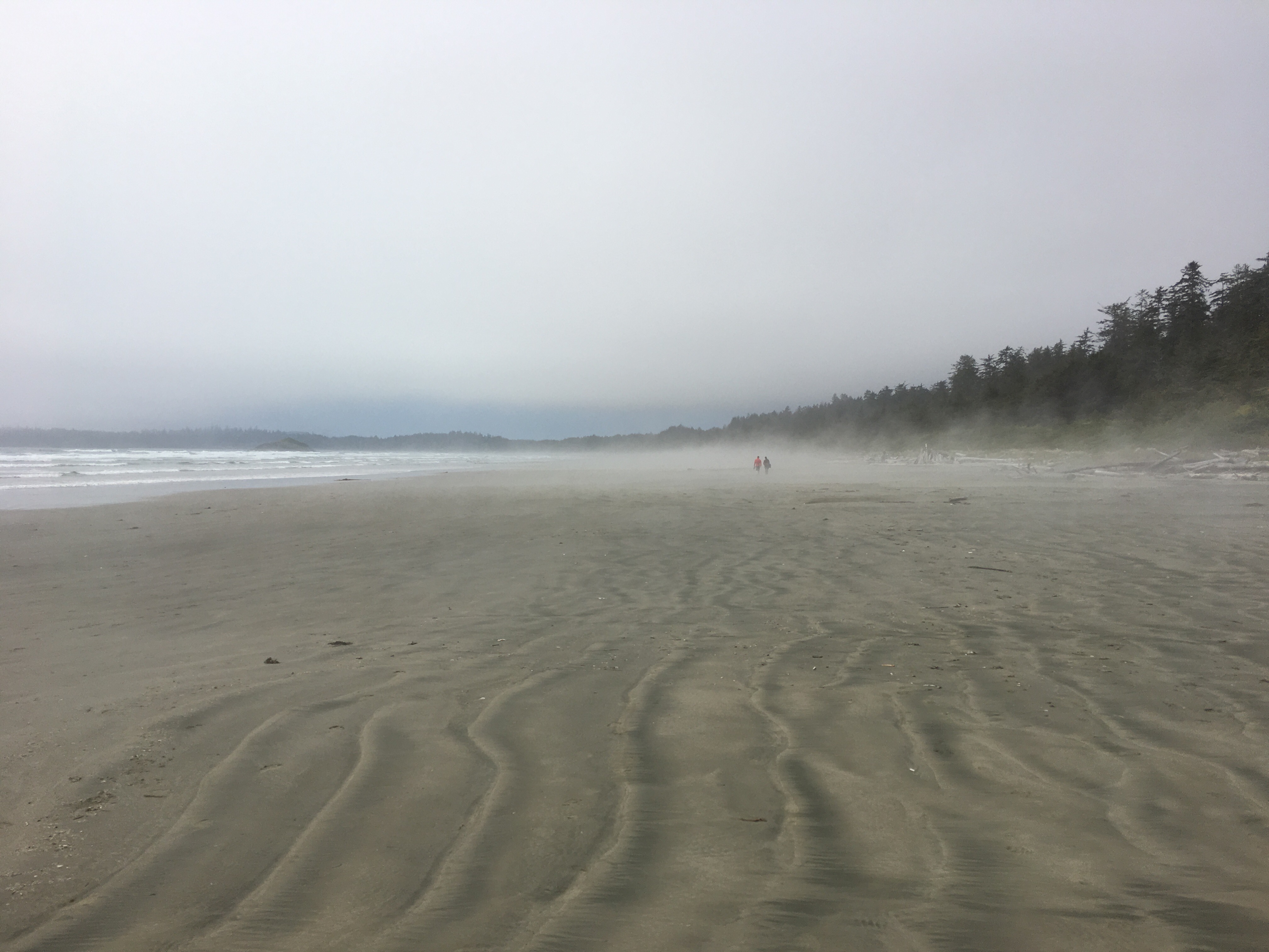 After lunch, we headed back down to Long Beach to walk its length. As soon as we walked out on the beach we could see that there was a temperature inversion that gave the sand the appearance of steaming.