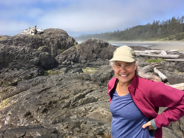We scrambled around on the rocks, discovering that 60-year-old knees aren’t as flexible as 30-year-old knees, then turned around for the hike back up the beach.