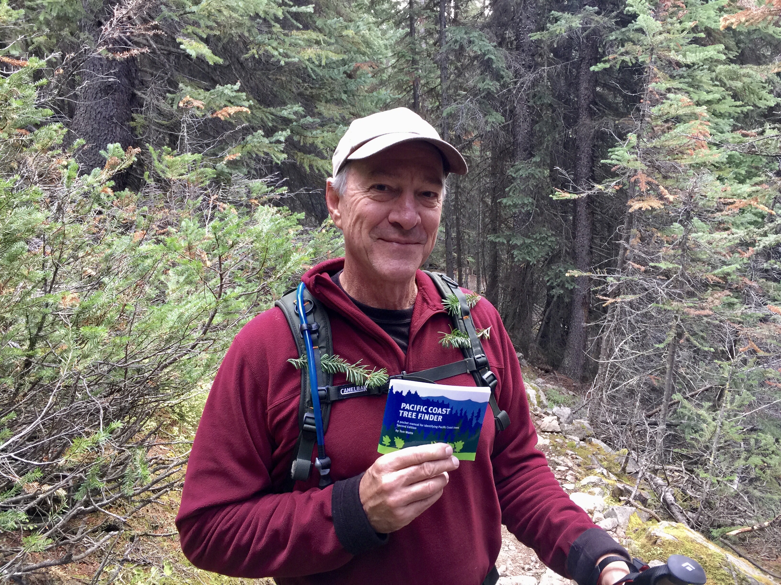 I was on a mission today to identify the predominant tree species. I snapped off tips of branches and stuck them in my shoulder straps so I could identify the needles later. I was a walking Christmas tree! (By the way, I was able to discern that most of the evergreens around us were White Fir.)