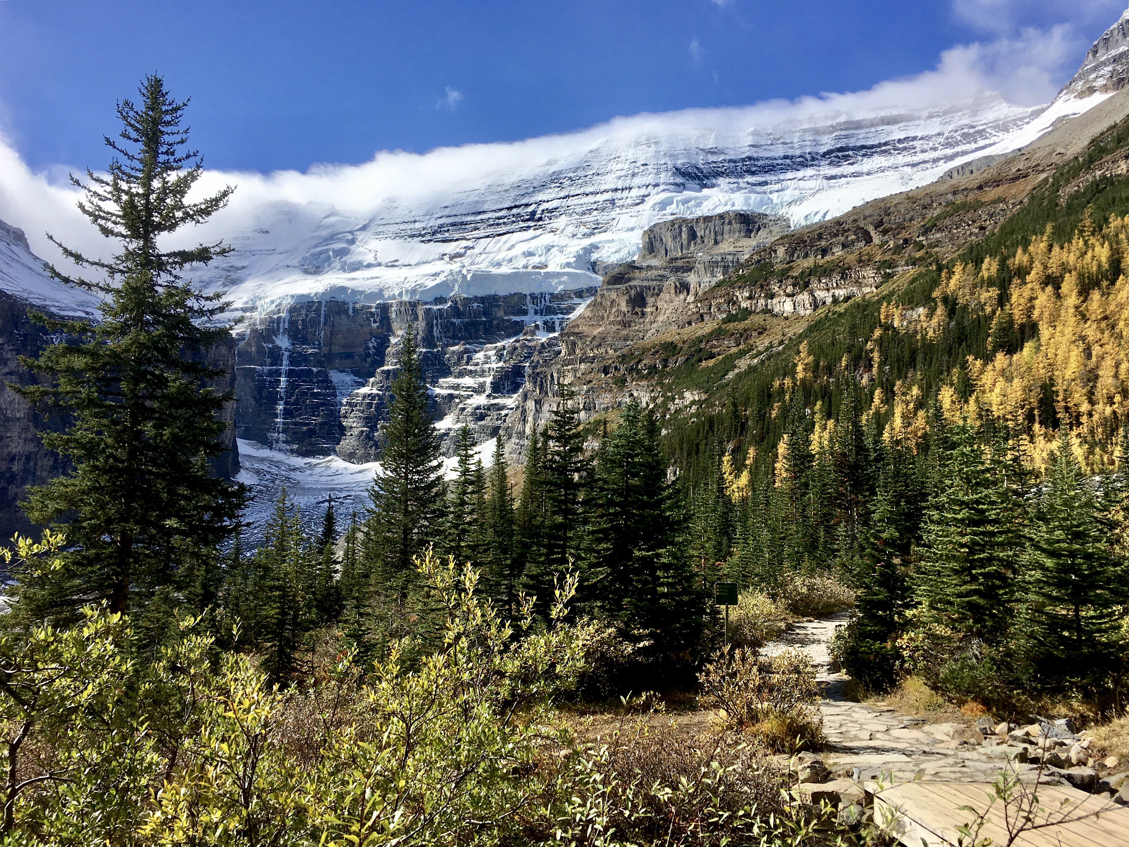 … to the lookout at “The Death Trap.” Cute name. This is the Upper Victoria Glacier – and other glaciers (6 in total), though I couldn’t begin to tell you where one ends and the next begins.
