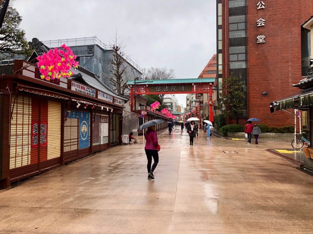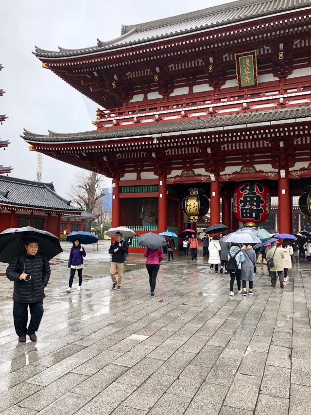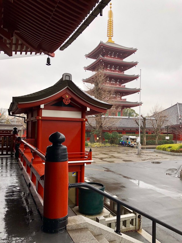 The next morning, Thursday, we caught the “Speedy & Directly Best Access Friendly Airport Limousine” bus from the airport to the Richmond Hotel Premier Asakusa International, a modern hotel superbly located in the Asakusa district just a few hundred yards from Sensō-ji, Tokyo’s oldest Buddhist temple. We went off in search of it on this cold and rainy day.