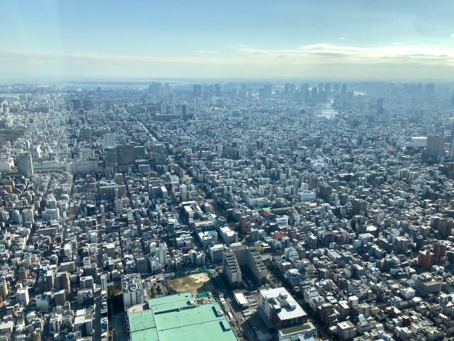 Construction of the Sky Tree Tower began in 2008 and it was completed on Leap Day, February 29, 2012. As I mentioned, it is the tallest free-standing tower in the world. It is also the tallest structure in Japan and the second tallest structure in the world, after the Burj Khalifa in Dubai, UAE. The tower is engineered to withstand earthquakes and it now accommodates 9 television and 5 radio stations that broadcast throughout the entire Tokyo metropolitan area. The view on a clear day is magnificent: