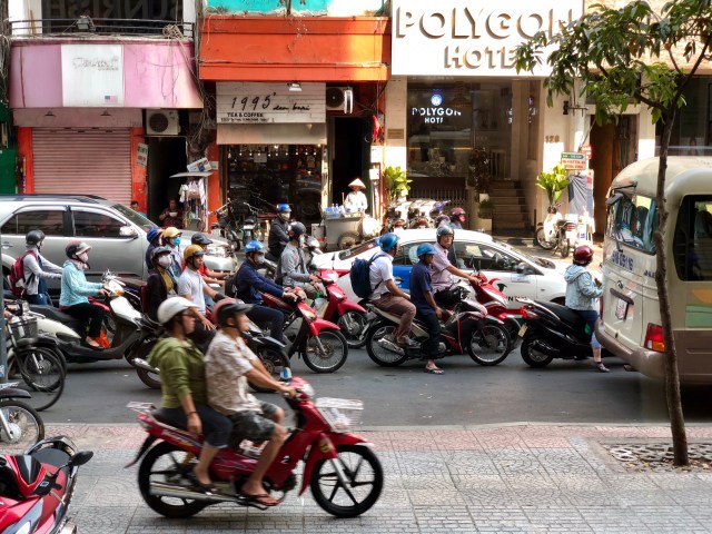 And the motorbike chaos on the street, below, is a precursor of what we’ll be dealing with for the next couple days as we play a real-life game of Frogger here in this city of nearly 9 million.