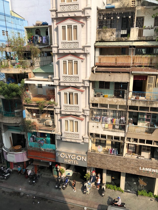 The view of the buildings across the street from our hotel room is a true montage of Saigon, rich and poor, cleanliness and clutter: