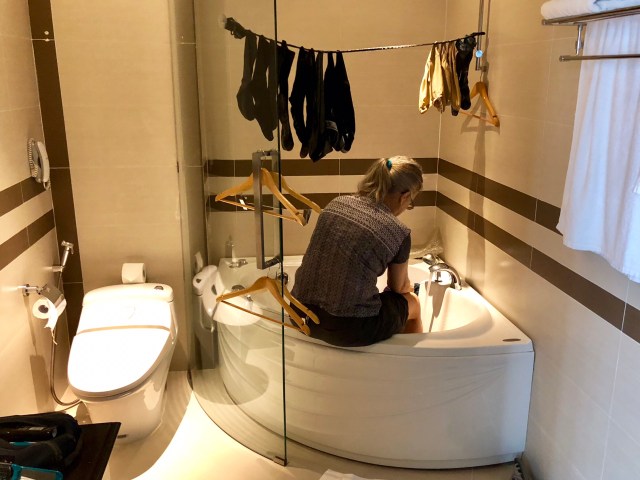 We have now changed from cold weather clothes to tropical attire, much like we do at home when we fly from Washington State to Florida. It was in the 40s and raining in Tokyo, but it’s in the 90s and sunny here in Saigon. Time to wash the cold-weather clothes and put them away in the luggage for the next four weeks.