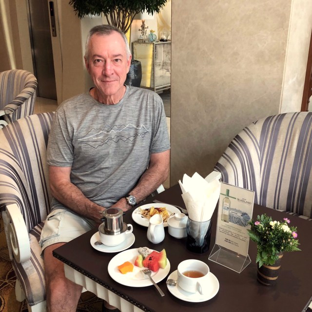 We stopped back at the hotel for High Tea – Vietnamese coffee for me (it’s like a miniature French Press coffee with condensed milk).