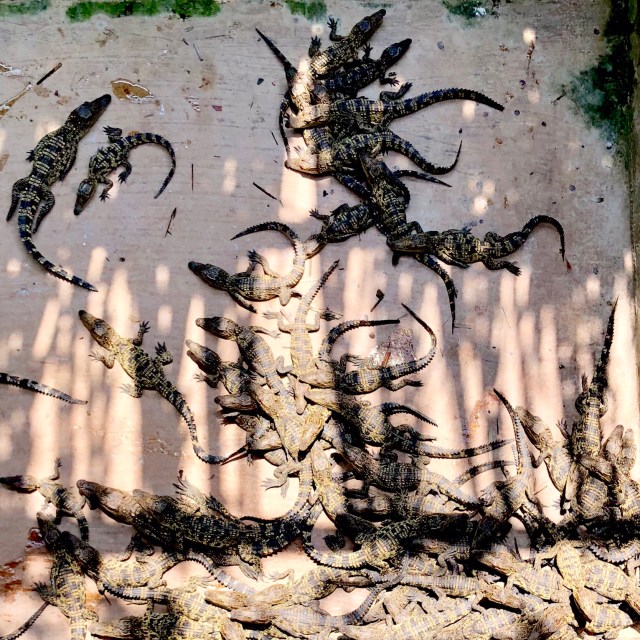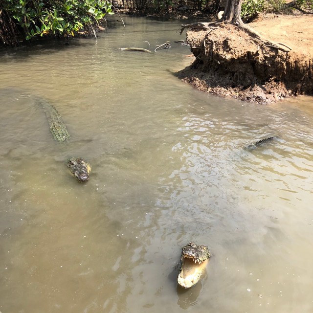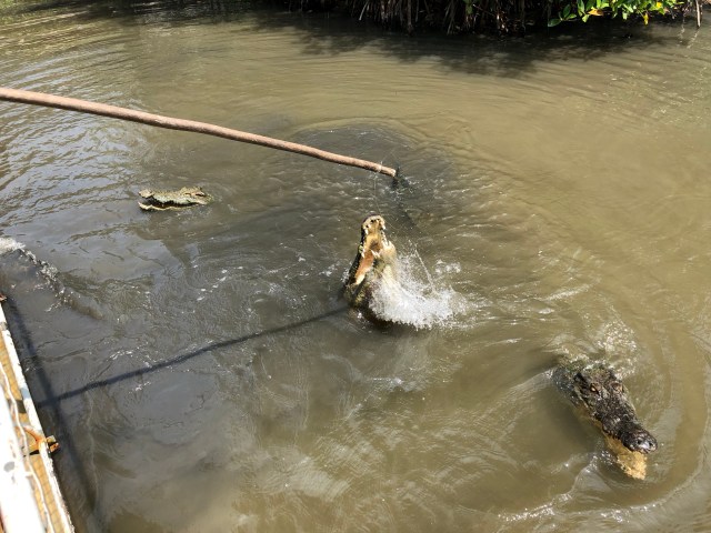 We could hear the bats off in the distance, but they were difficult to see, hanging upside down in the mangrove forest. Our next stop was the crocodile lagoon.