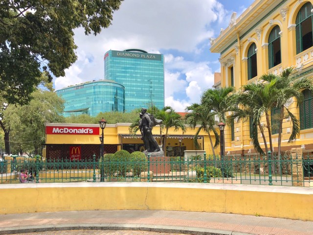 In fact, it’s hard to believe that this really is a communist country, given the capitalistic and entrepreneurial spirit of its people, on display everywhere you look. I wonder how many people find the irony I do in this scene with the statue of victorious revolutionaries in front of the Saigon Central Post Office and the next-door McDonald’s?