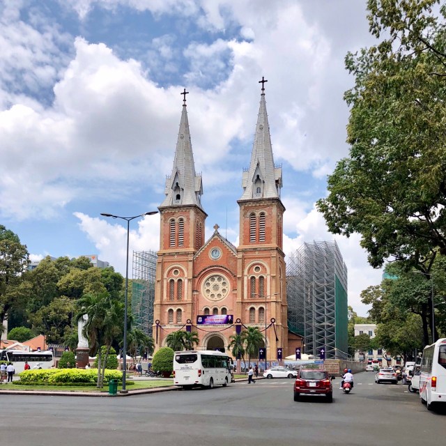 Across the street from the post office is another relic of French Indochina, the Notre Dame Cathedral, currently under renovation.